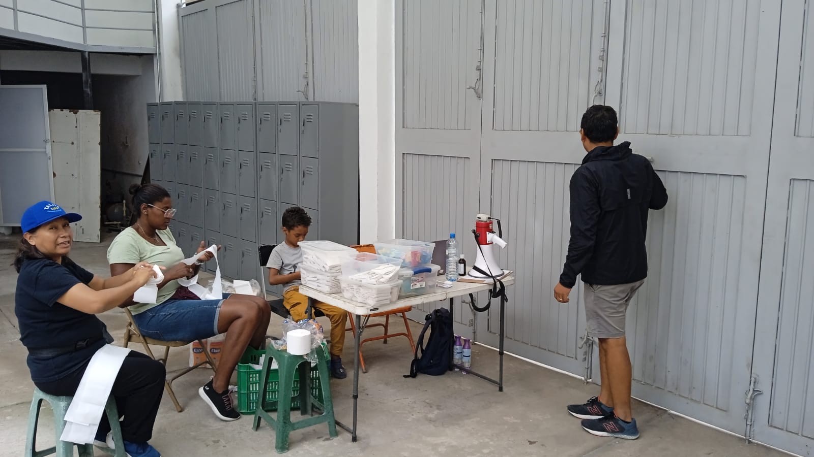 Este espacio, hasta el momento brinda servicio sanitario, así como comida a hombres, mujeres y niños.