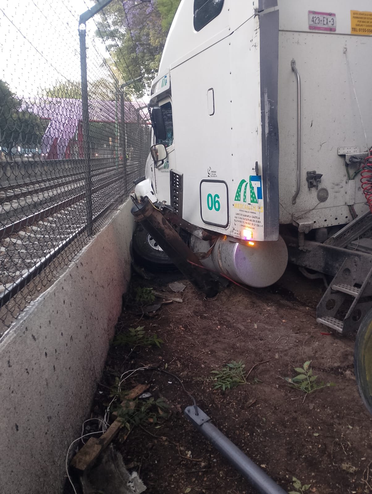 De acuerdo con los primeros reportes, el conductor del vehículo pesado perdió el control y chocó contra la estructura que delimita el paso del tren, lo que provocó daños en la zona e interrupciones en el servicio.