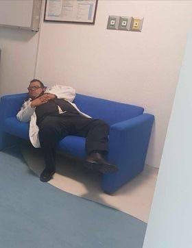 Las fotografías fueron tomadas hace tiempo antes y corresponde en una de ellas a un doctor que estaba exhausto luego de más de 24 horas de estar al lado de un pequeño que estaba delicado de salud por quemaduras y la segunda de mucho tiempo antes en la cual no se tiene la certeza si correspondió a un momento totalmente libre o de descanso y alimentos del empleado.