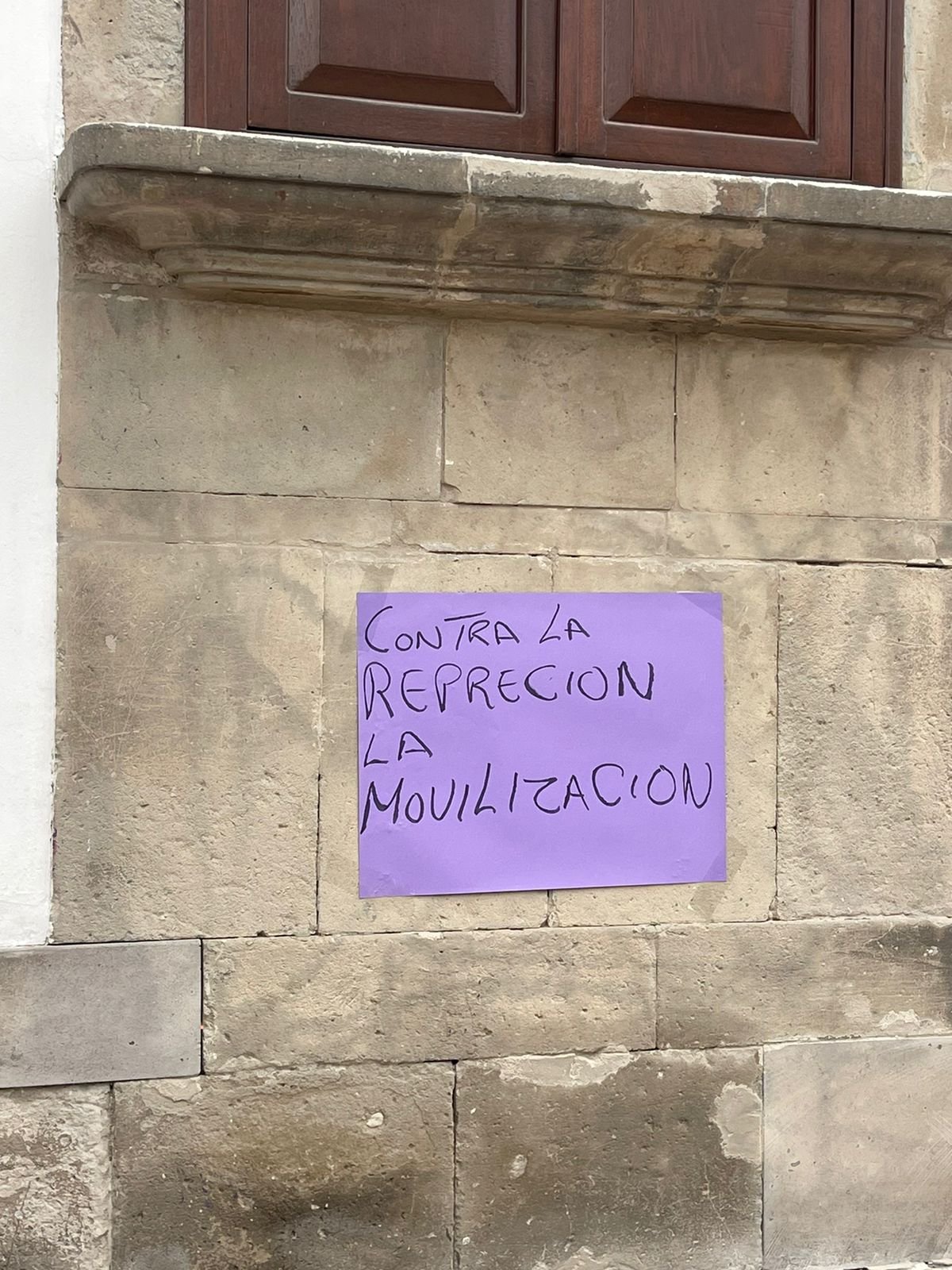 “HA REPRIMIDO A UN GRUPO DE COMERCIANTES AMBULANTES EN LA CALLE LEANDRO VALLE USANDO SU APARATO REPRESOR SIN IMPORTAR QUE HUBIERA PEATONES MUJERES EMBARAZADAS, ADULTOS MAYORES Y MENORES DE EDAD A LOS CUALES FUERON BRUTALMENTE GOLPEADOS Y ENCARCELADOS POR ORDENES DE LOS DIRECTORES FACISTAS”, resaltaba en sus mensajes impresos.