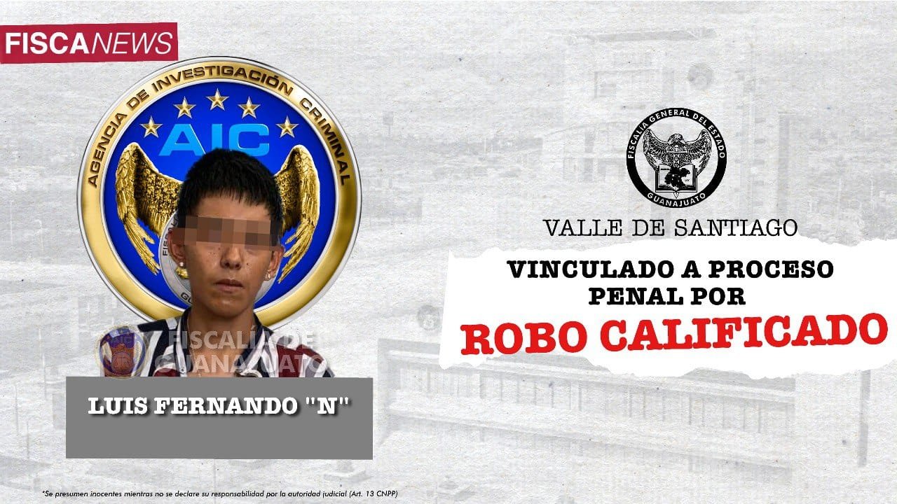 Valle de Santiago, Gto.- 11 de septiembre de 2023.- La Fiscalía de Guanajuato investigó el robo de una motocicleta y detuvo al presunto responsable, un joven de 18 años, quien fue detenido en posesión de un arma de fuego y droga. En los actos de investigación realizados, se llevó a cabo una audiencia de reconocimiento con resultado positivo. “El Guicho” ya se encuentra en prisión, vinculado a proceso penal por robo calificado.