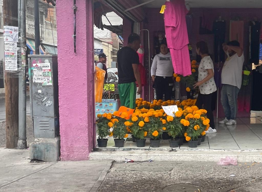Salamanca.- Aunque muchas personas acuden a comprar artículos relacionados con el festejo de Halloween, comerciantes ofertan flor de cempasúchil a 30 pesos para altares de muertos.