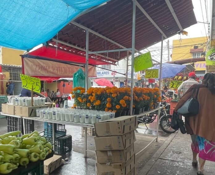 En el mercado municipal Tomasa Esteves, también los comerciantes exhiben artículos de Halloween y para altares de muertos.