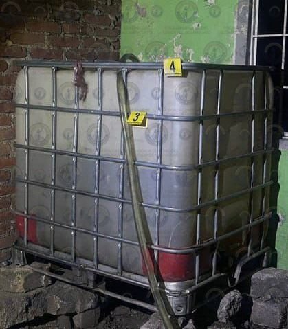 La diligencia fue ejecutada por agentes de Investigación Criminal, luego de que un Juez autorizara la orden de cateo. En el lugar, las autoridades localizaron el combustible almacenado en siete garrafas de 20 litros, así como en un contenedor con capacidad de mil litros, abastecido aproximadamente a la mitad.