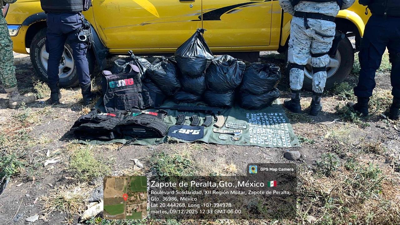 Un operativo interinstitucional encabezado por la Guardia Nacional y el Ejército Mexicano, en coordinación con la Policía Municipal de Abasolo, dejó como saldo el aseguramiento de armas de alto calibre, droga, equipo táctico y un vehículo, en hechos registrados en la comunidad de Sarabia.