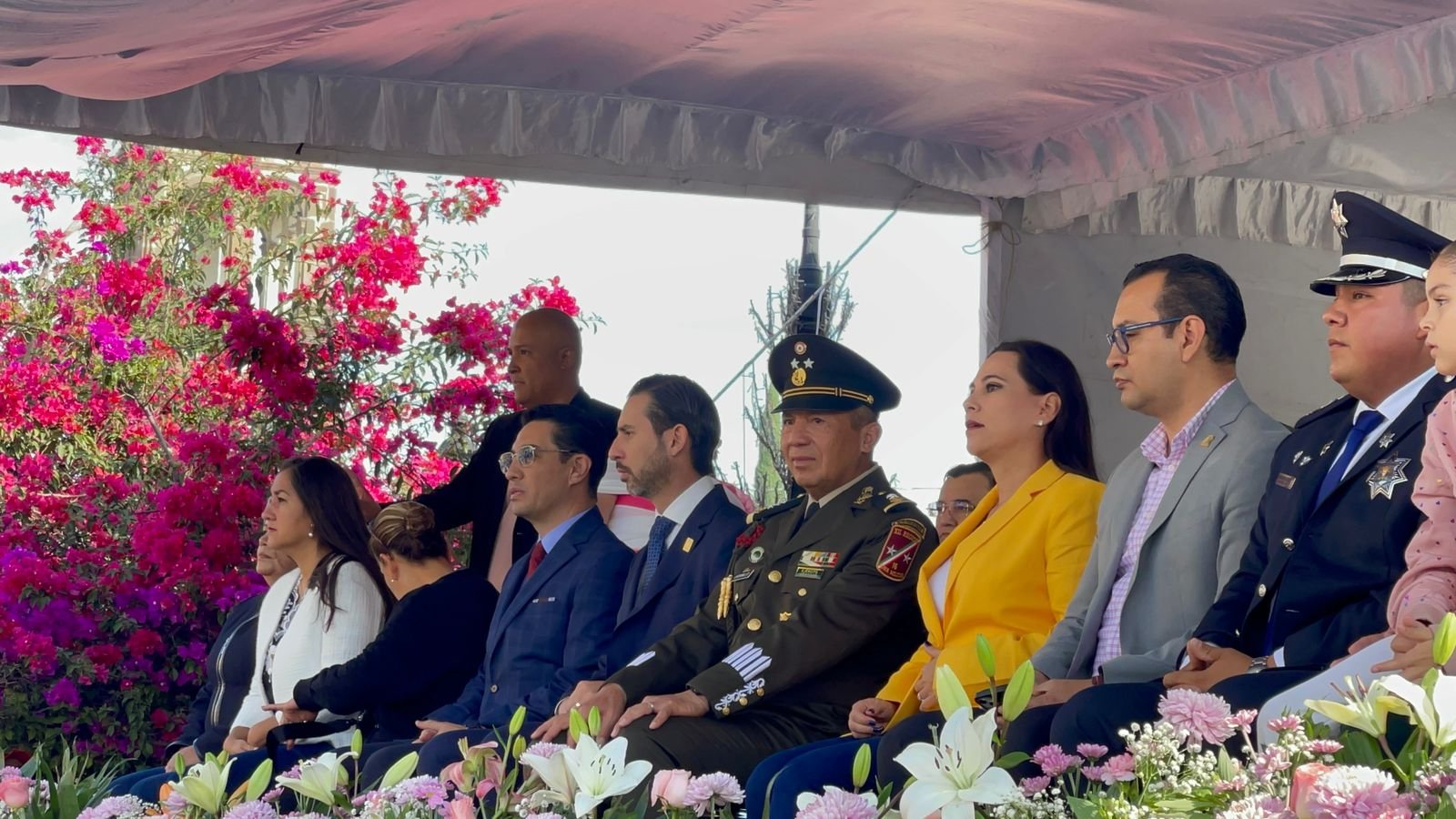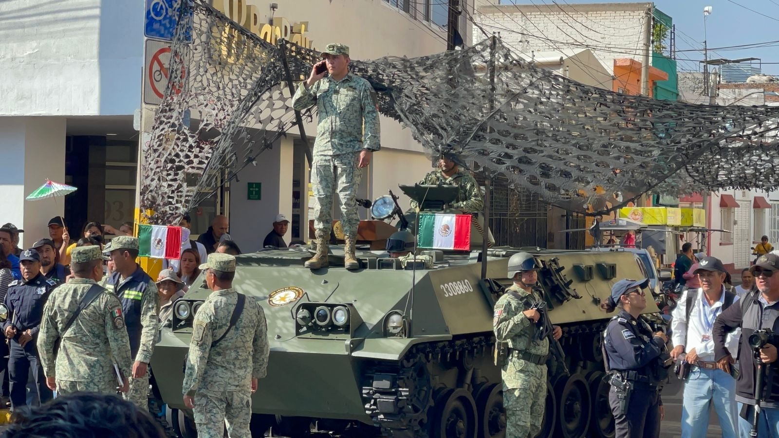 José Luis Quiñonez de la Fuente, comandante del 8vo. Regimiento Blindado de Reconocimiento de la XII Región Militar y comandante de la columna del desfile, destacó que, “desfilaron 30 banderas de guerra; 316 integrantes de la Guardia Nacional y el Ejército Mexicano; 35 elementos de seguridad pública; 15 elementos de Tránsito; 20 elementos de Bomberos; cinco integrantes de la Cruz Roja; cinco integrantes de Protección Civil; 5 mil 476 alumnos y docentes de diferentes planteles educativos de la ciudad; 100 vehículos; 22 motocicletas; 12 canófilos y 60 charros”.