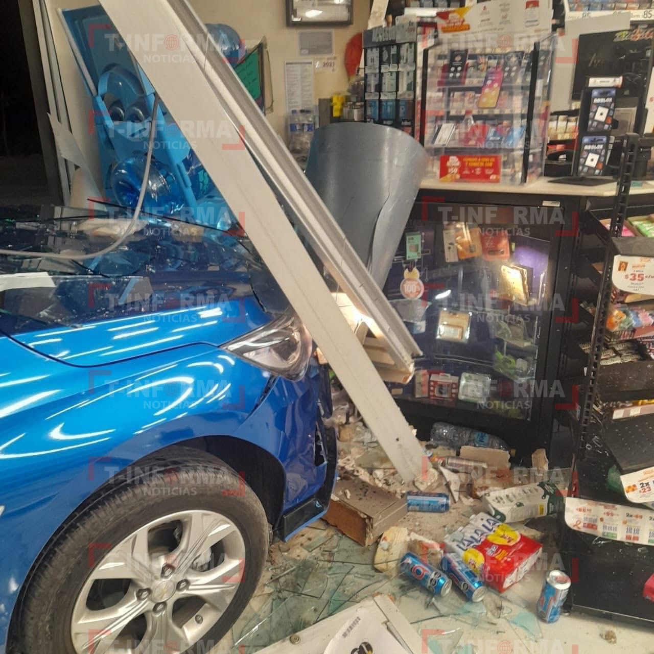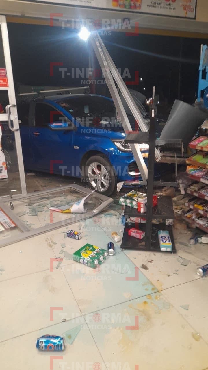 Un automóvil terminó al interior de una tienda de conveniencia tras impactarse contra la fachada del establecimiento la noche del jueves, en hechos ocurridos en la colonia Purísima del Jardín, cerca del fraccionamiento San Javier.