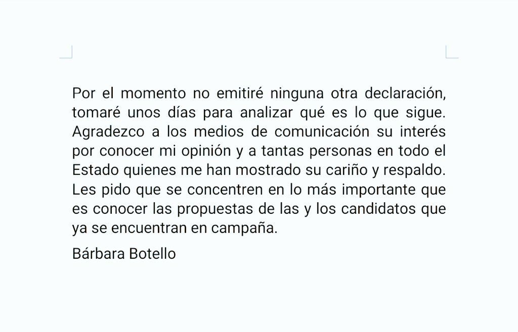 Tras darse a conocer que será Vanessa Montes de Oca quien vaya en búsqueda de ser la próxima alcaldesa, Bárbara Botello no expresó opinión alguna a medios ni en sus redes sociales, sino hasta este jueves 14 de marzo a través de un video.