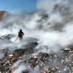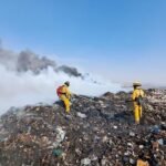 Elementos de Bomberos Silao se sumaron a las labores para controlar el incendio en el relleno sanitario de Guanajuato Capital.