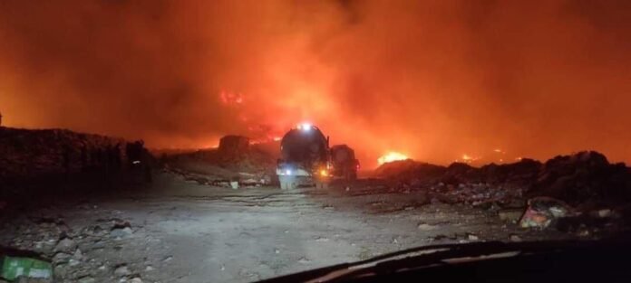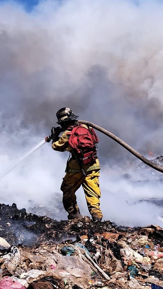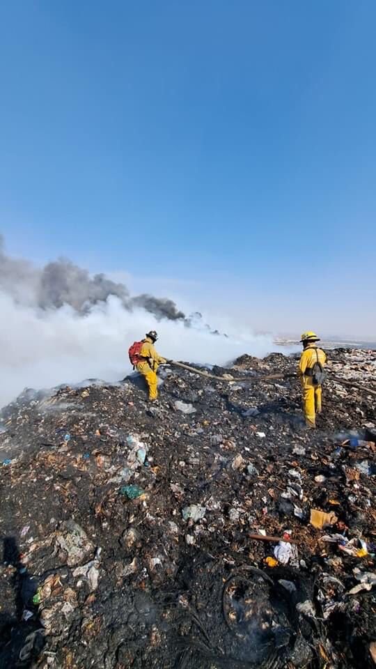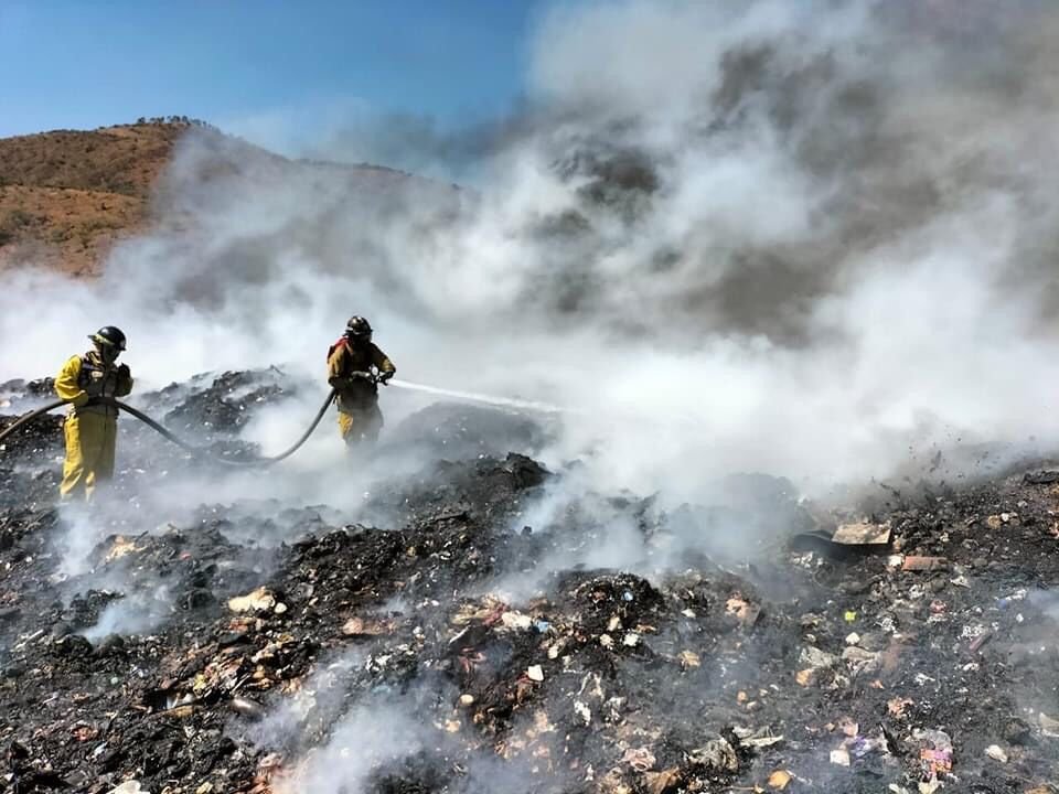 Elementos de Bomberos Silao se sumaron a las labores para controlar el incendio en el relleno sanitario de Guanajuato Capital.