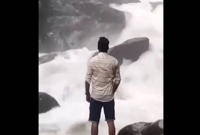 Un tiktoker perdió la vida tras pretender grabar un video sobre una piedra, frente a las cataratas Arasinagundi Karnataka, en la India.