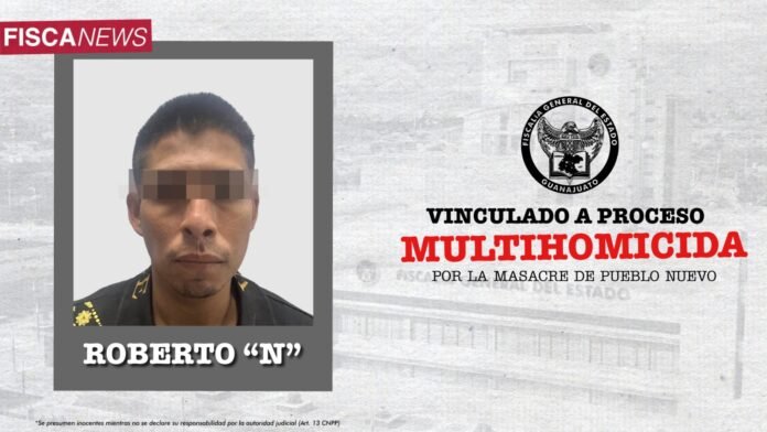 Pueblo Nuevo, Gto.- 20 de julio de 2023.- Cae uno de los presuntos responsables de la masacre en la comunidad de Dos Ríos de Yostiro. El hombre de 31 años es miembro de un grupo criminal que opera en la zona. Elementos del Ejército Mexicano lograron su captura en posesión de un arma larga y dos cargadores. La Fiscalía General del Estado expuso la teoría jurídica y probatoria del caso y obtuvo su vinculación a proceso por homicidio simple en agravio de cinco personas y homicidio simple en grado de tentativa en agravio de tres elementos del Ejército Mexicano.