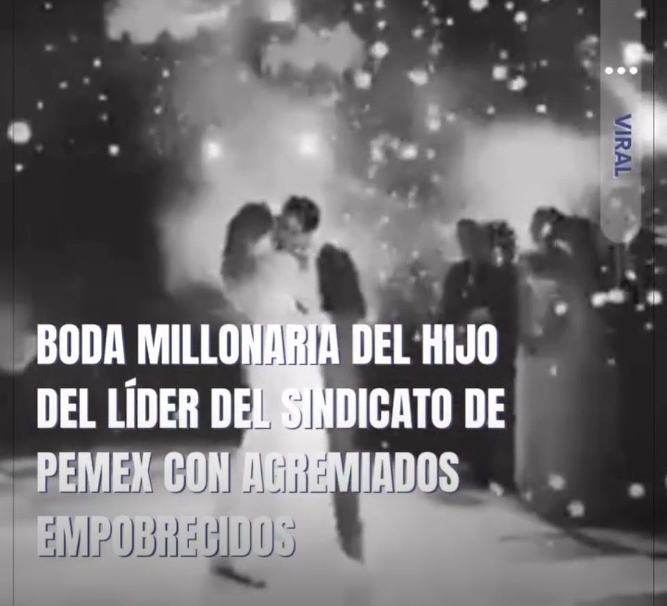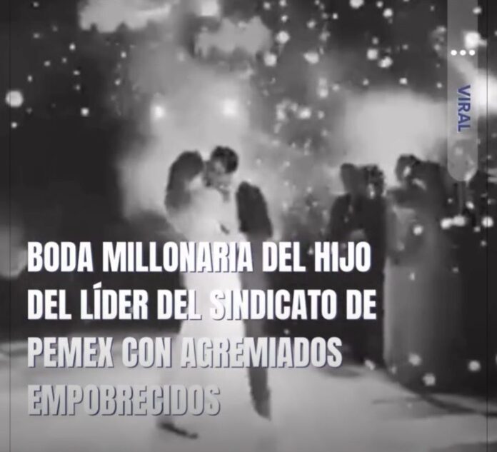 “Boda millonaria del hijo de líder sindical de petróleos mexicanos, líderes Sindicato del sindicato de Pemex”, denuncian los opositores.