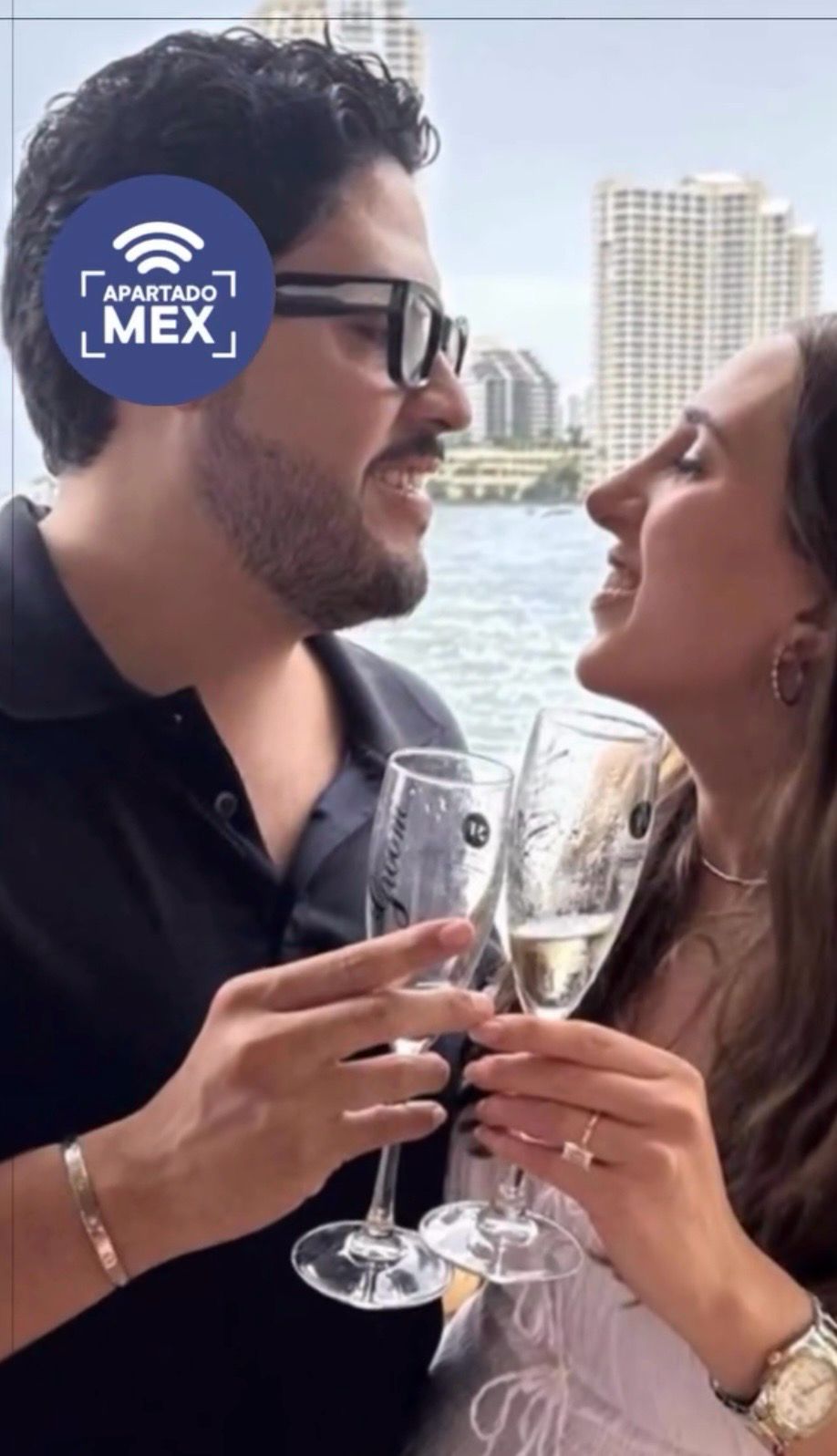 En las fotos que circulan la pareja se observa brindando con champán en un yate evaluado en 6 millones de dólares, mesa de regalos en Palacio de Hierro, cuenta bancaria en Santander para recibir depósitos en pesos o en dólares. “Puro derroche”.