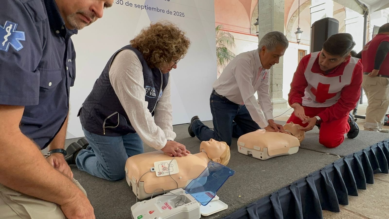 Tovar Guerrero señaló que se espera contar próximamente con desfibriladores en espacios públicos, equipos que permiten restablecer el ritmo normal del corazón en casos de arritmias graves como la fibrilación ventricular o la taquicardia ventricular sin pulso, que pueden derivar en paro cardíaco.