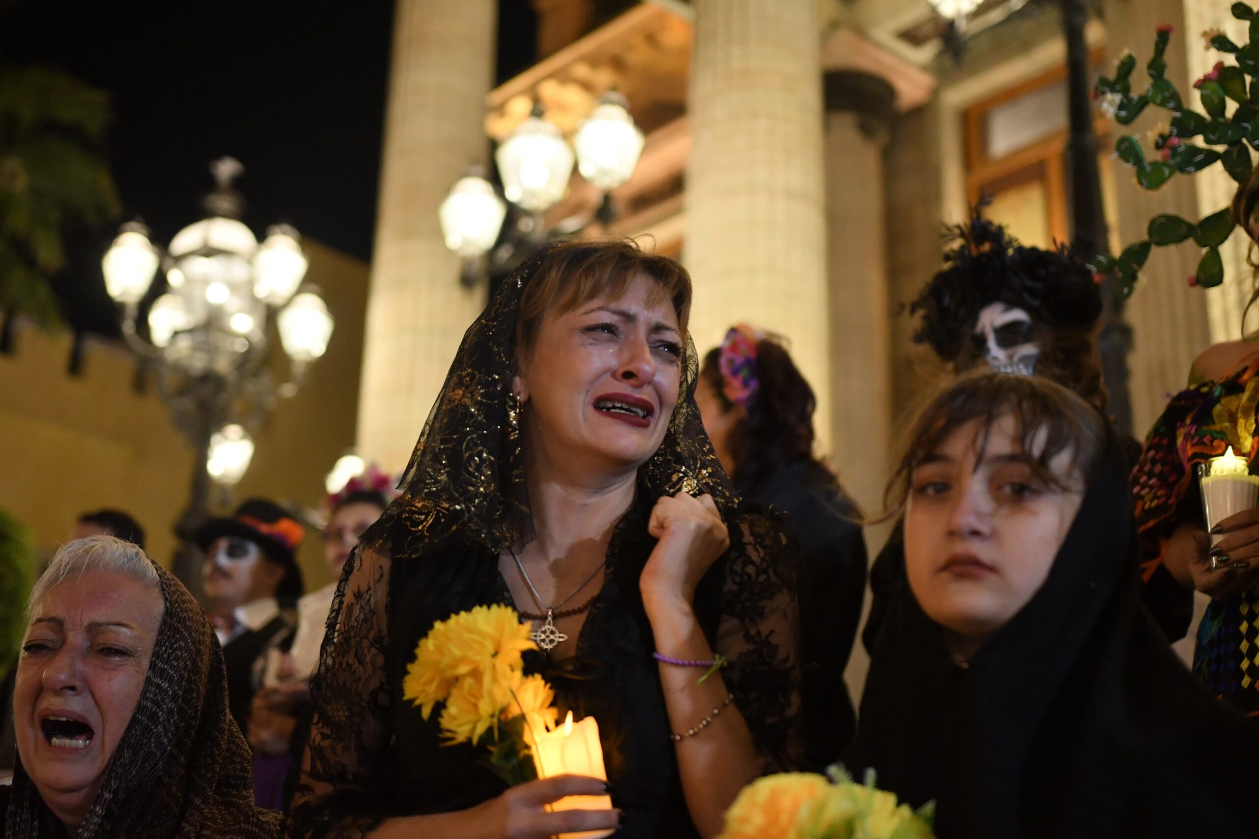 Las plañideras de San Juan del Río, actrices por gusto y afición, externaron su regocijo luego de recorrer las calles de Guanajuato Capital entre cientos de espeluznantes personajes que se entremezclaron con niñas y niños que salían a pedir calaverita.