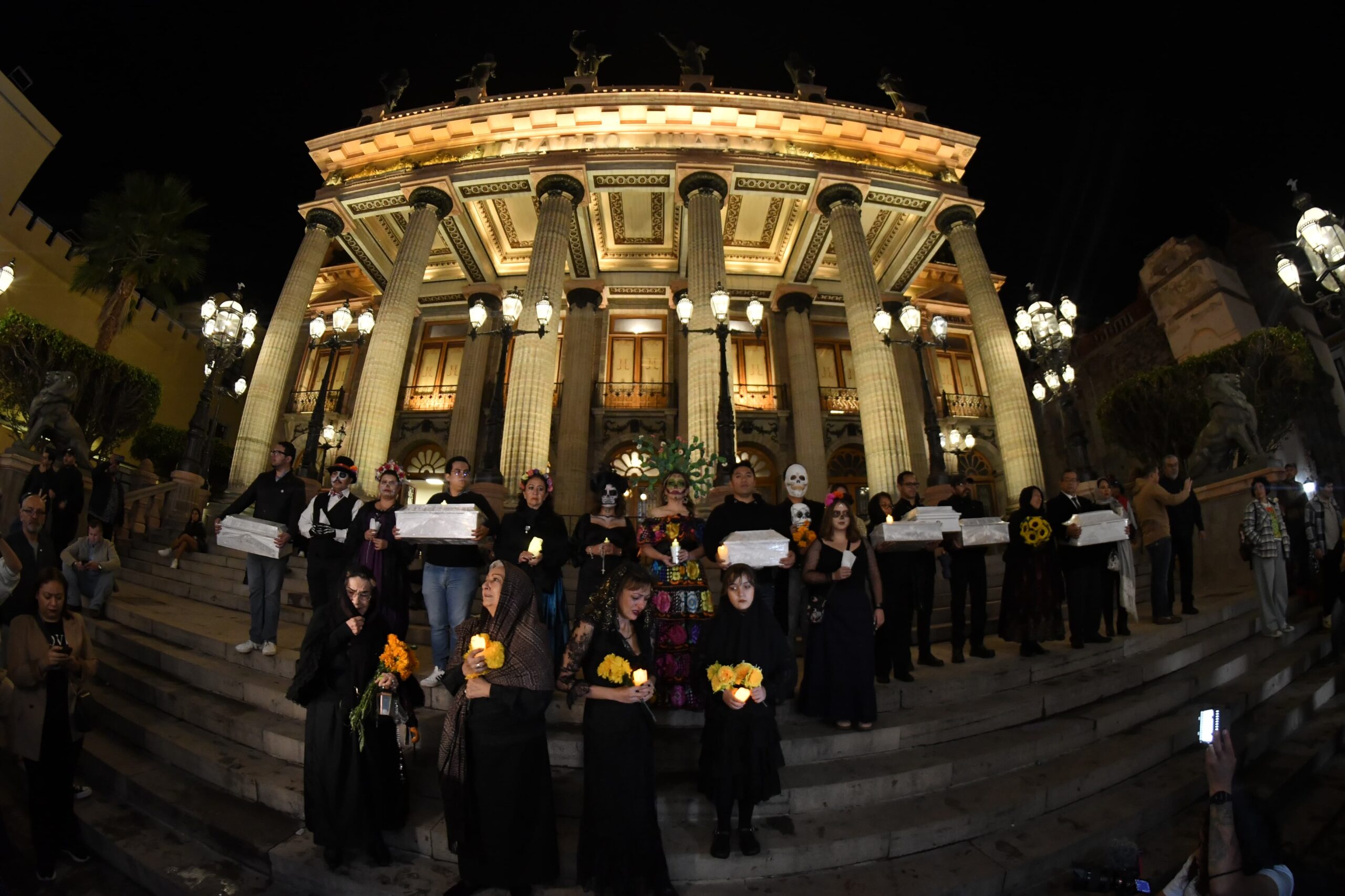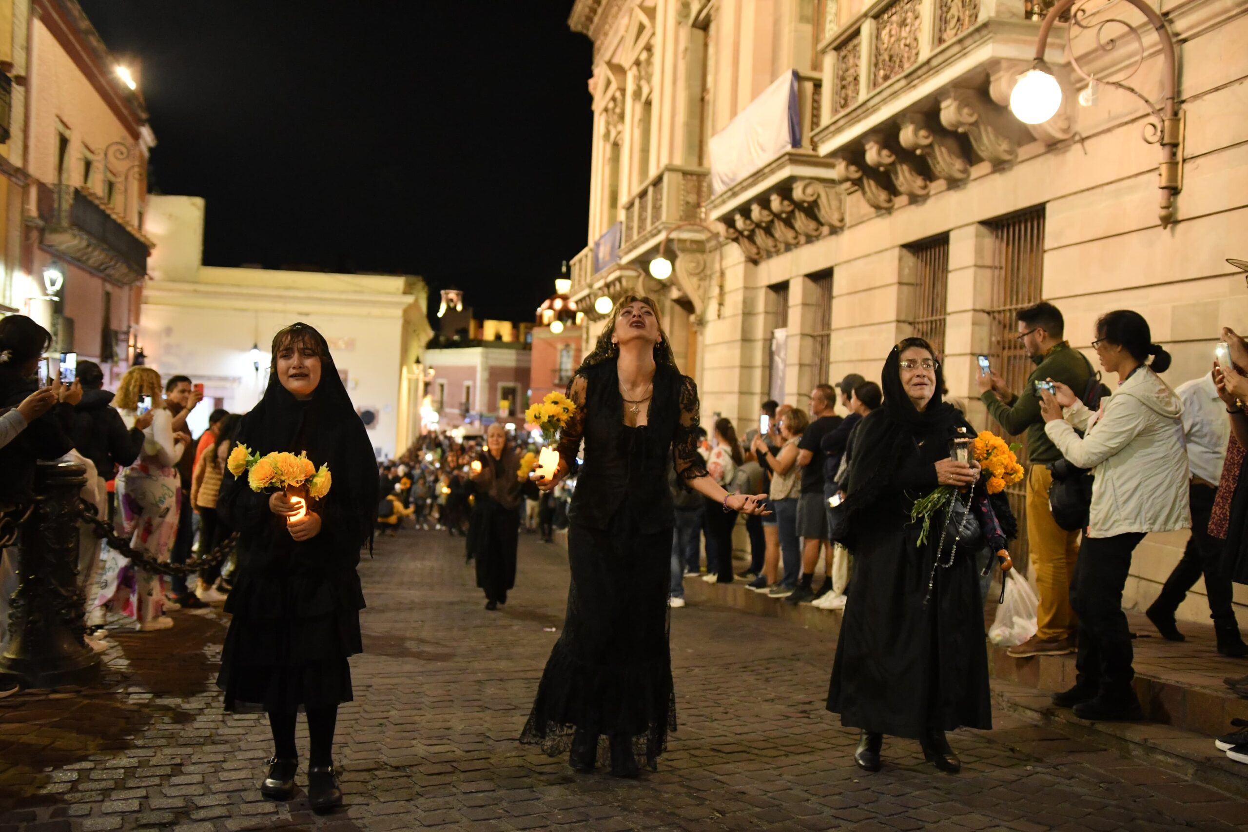 Este 31 de octubre, Día de los Angelitos, más de 500 personajes de ultratumba se sumaron a la procesión para recrear la melancólica tradición de llevar en solemne caminata a los infantes difuntos al panteón, de manera muy similar a la usanza guanajuatense del siglo XIX.