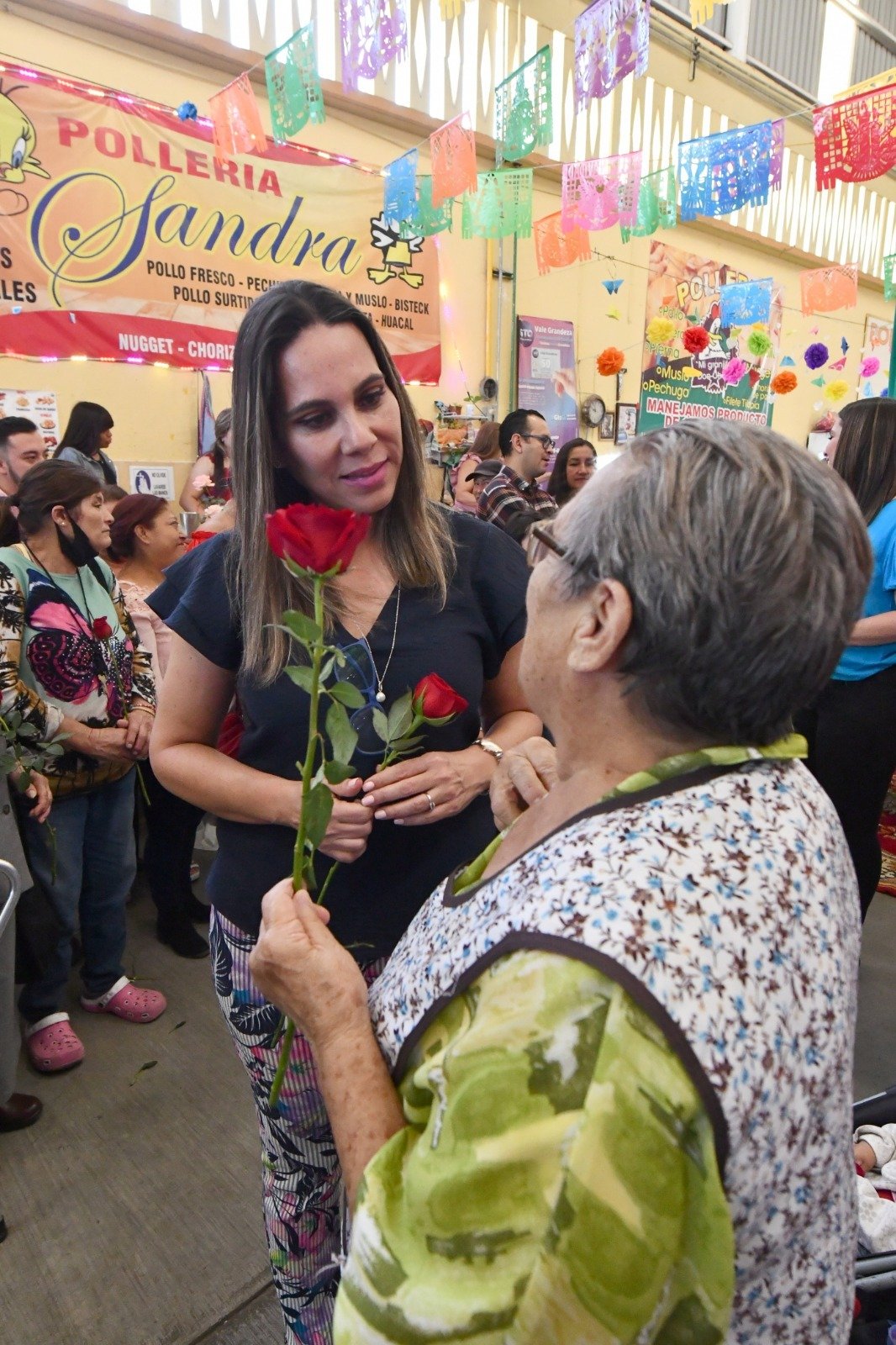 Lorena Alfaro García, presidenta municipal, destacó el trabajo que realizan todas las madres de familia que laboran en el mercado o que consumen en el; reconoció la labor de estas mujeres para mantener este espacio dedicado al comercio en buenas condiciones y con un buen servicio.