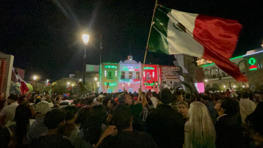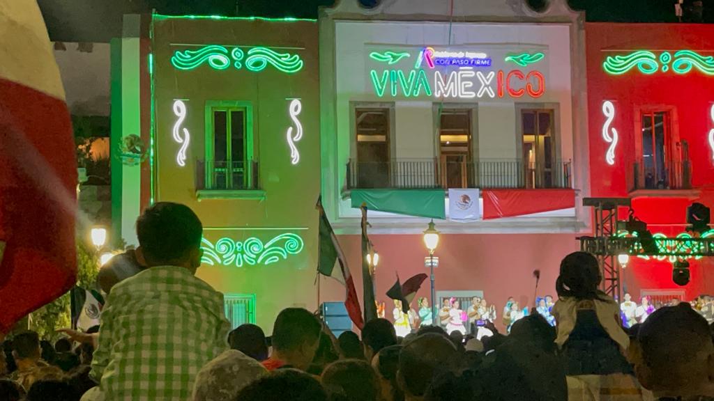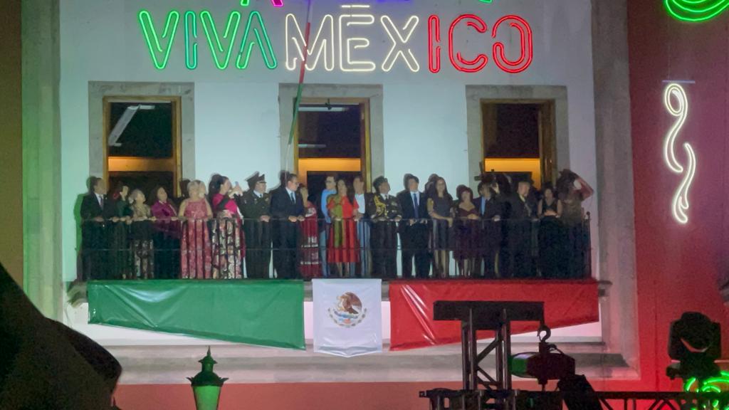 Alrededor de las 11 de la noche, la alcaldesa del municipio Lorena Alfaro García, salió del balcón que da de la Presidencia Municipal a la Plaza, para dar el acto de grito y llevar a todos los ciudadanos al unísono el “Viva México”.