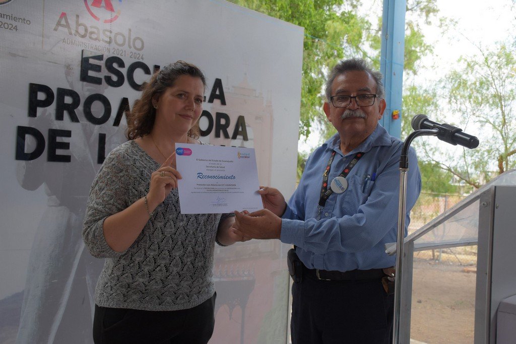 Abasolo, Gto. 26 de junio de 2023.- Este lunes 26 de junio, se llevó a cabo el evento de Certificación como Escuela Promotora de la Salud del Jardín de Niños Juan Aldama de la Comunidad de Huitzatarito en el Municipio de Abasolo, donde acudieron Autoridades Municipales, Educativas y de Salud del Estado de Guanajuato.