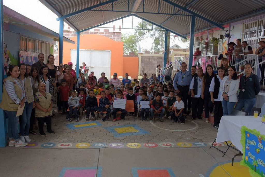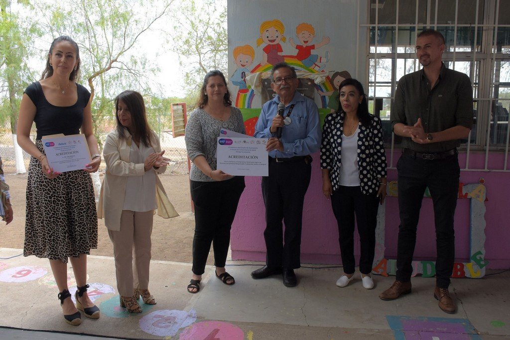 En el evento también estuvieron presentes la Regidora María del Refugio Contreras Espinosa en representación de la Presidenta Municipal Rocío Cervantes Barba, el Coordinador Jurisdiccional de Promoción de la Salud, Luis Fernando Ramírez Domínguez, el Director del CAISES Abasolo Miguel Ángel Amezcua Medel, la responsable de Salud Escolar de la Jurisdicción VI Daniela Noemí Rocha Arévalo, la Jefa del Sector 19 de Preescolar Martina Corona Ruiz, la Supervisora de la Zona 58 de Preescolar Ma. Guadalupe Chávez Castillo, la Coordinadora de Enfermeras del CAISES Abasolo Graciela Hernández Cervantes, así como la Coordinadora Médica del CAISES Abasolo Ana Guadalupe Barrientos Hernández, todos ellos develaron la placa conmemorativa a la Certificación de este Plantel de Preescolar como Escuela Promotora de la Salud.