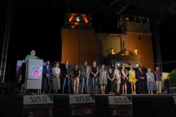 Abasolo, Gto. 08 de mayo de 2023.- En una agradable noche abasolense, la Presidenta Municipal Rocío Cervantes Barba, inauguró la 47a Edición de la Semana Cultural en honor al Nacimiento y Bautizo de Miguel Hidalgo y Costilla, además de entregar la Presea al Ciudadano Distinguido a la Sra. Bertha Silvia Santacruz Manso (La Chita), por una vida dedicada a ayudar a la gente de Abasolo.