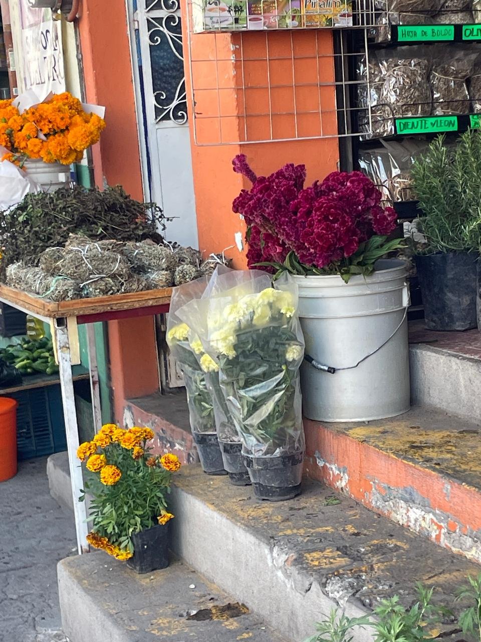 A diferencia de los festejos de Halloween, que abarrotaron los puestos de mercancía extranjera durante el fin de semana, esta vez el color naranja intenso del cempasúchil llenó los pasillos del principal centro de abastos popular del municipio. También se ofrece flor de diente de león, otra especie usada en altares y ofrendas.