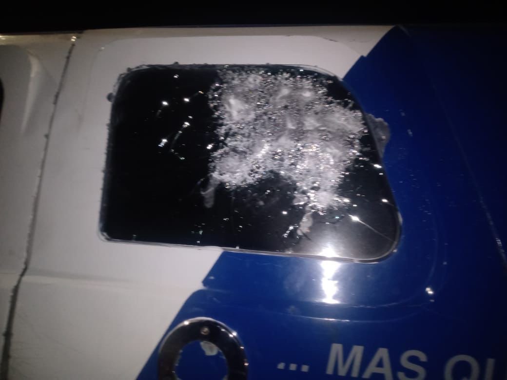 Las balas no penetraron hacia el interior del vehículo y causaron daños uno de los vidrios de la parte trasera de la camioneta de valores, aunque se desconoce si los custodios, repelieron la agresión también a balazos.