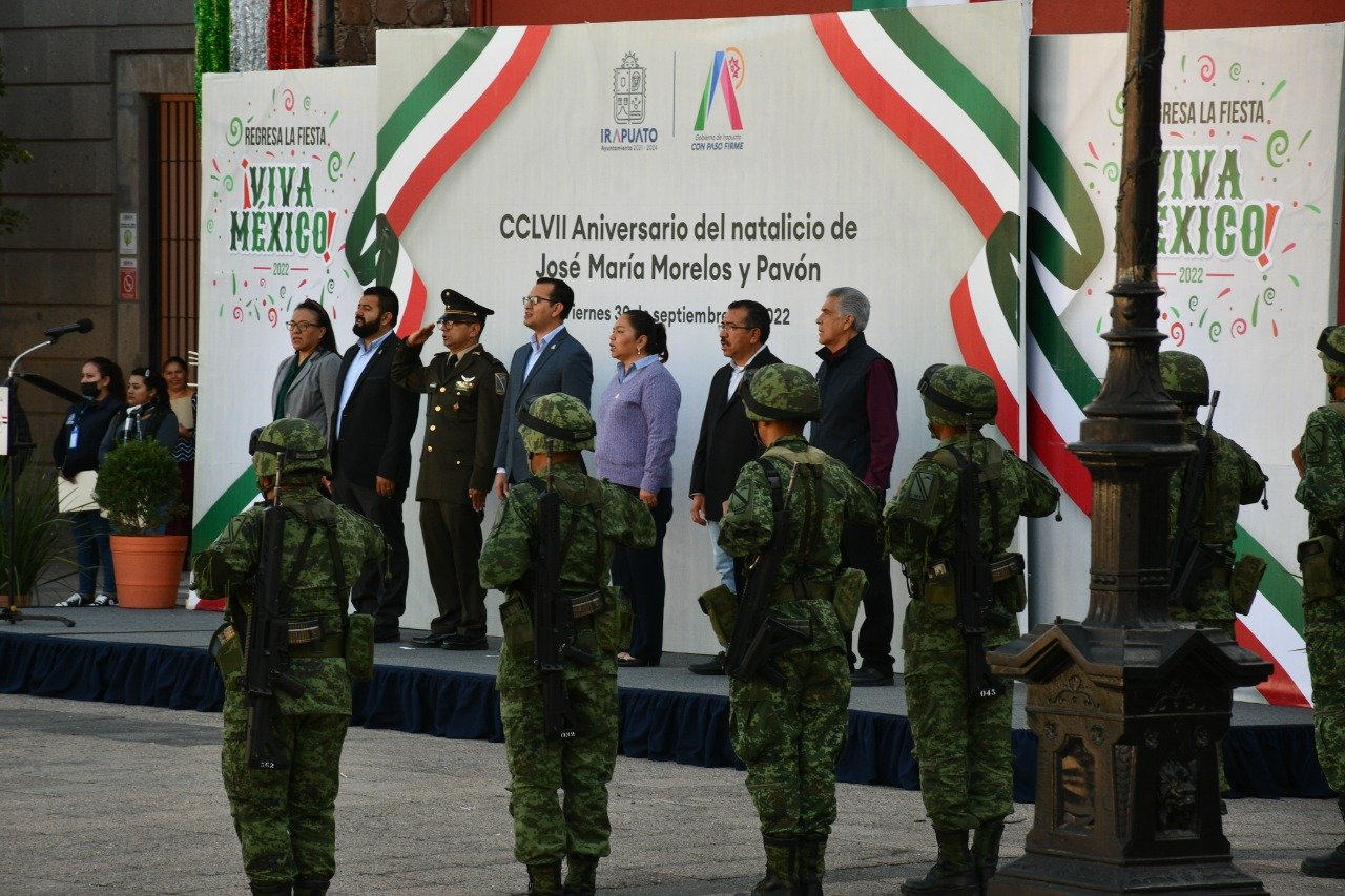 Irapuato, Gto. 30 de septiembre del 2022.- Autoridades municipales, personal del Ejército Mexicano e instituciones educativas, conmemoraron el 257 Aniversario del Natalicio de José María Morelos y Pavón, quien fue parte del movimiento insurgente.