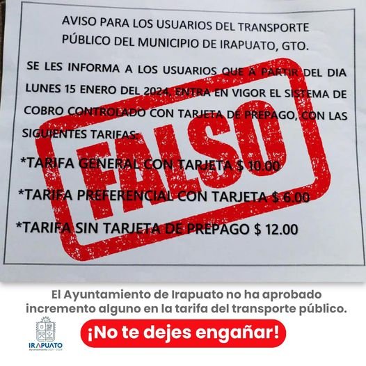 Tras esto, el gobierno local ha descartado el cobro por medio de información oficial, donde presume como “falso” el cobro aumentado para quienes no tengan la tarjeta a partir del lunes 15 de enero.