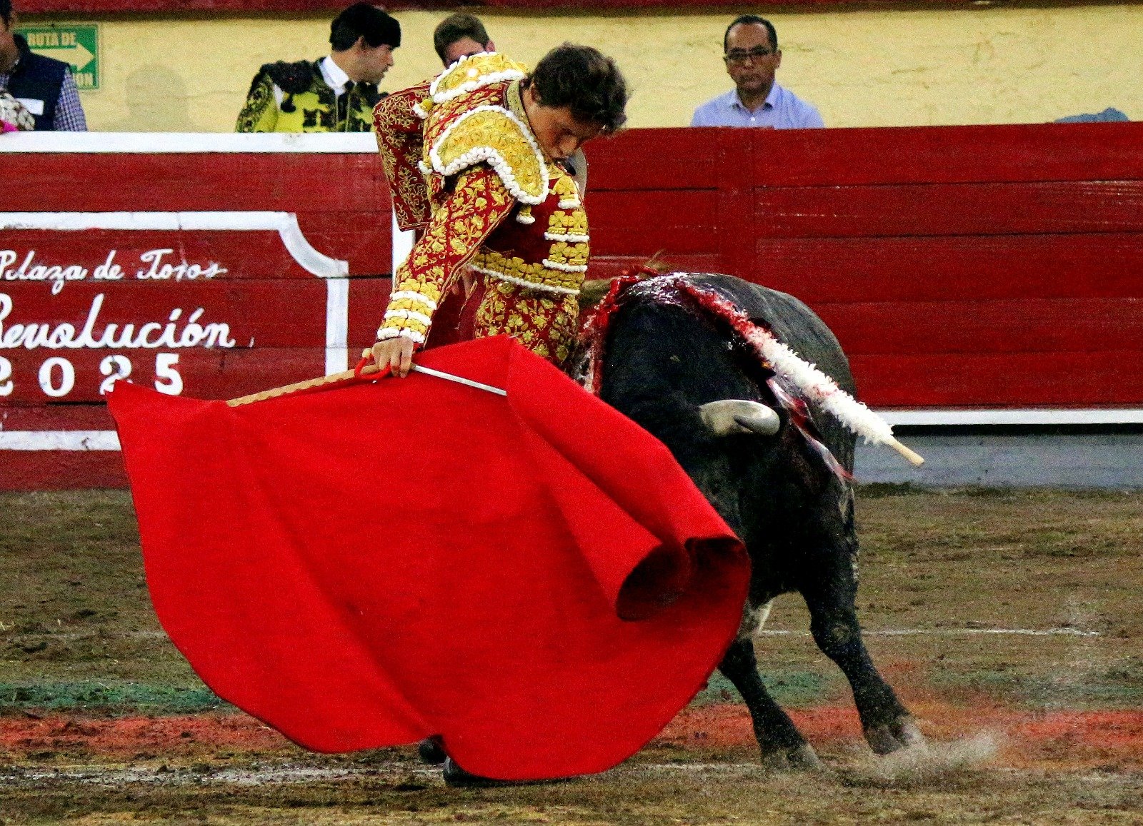 El magno evento para festejar los 115 años de la revolución mexicana y los 85 de inaugurada la plaza con el mimo nombre alusivo a la gesta de 1910, comenzó con un mosaico de bailes folkloricos de adelitas y revolucionarios, rubricados con el grito al unísono de fuera morena fuera morena al desplegare una bandera gigante en los tendidos de sol.