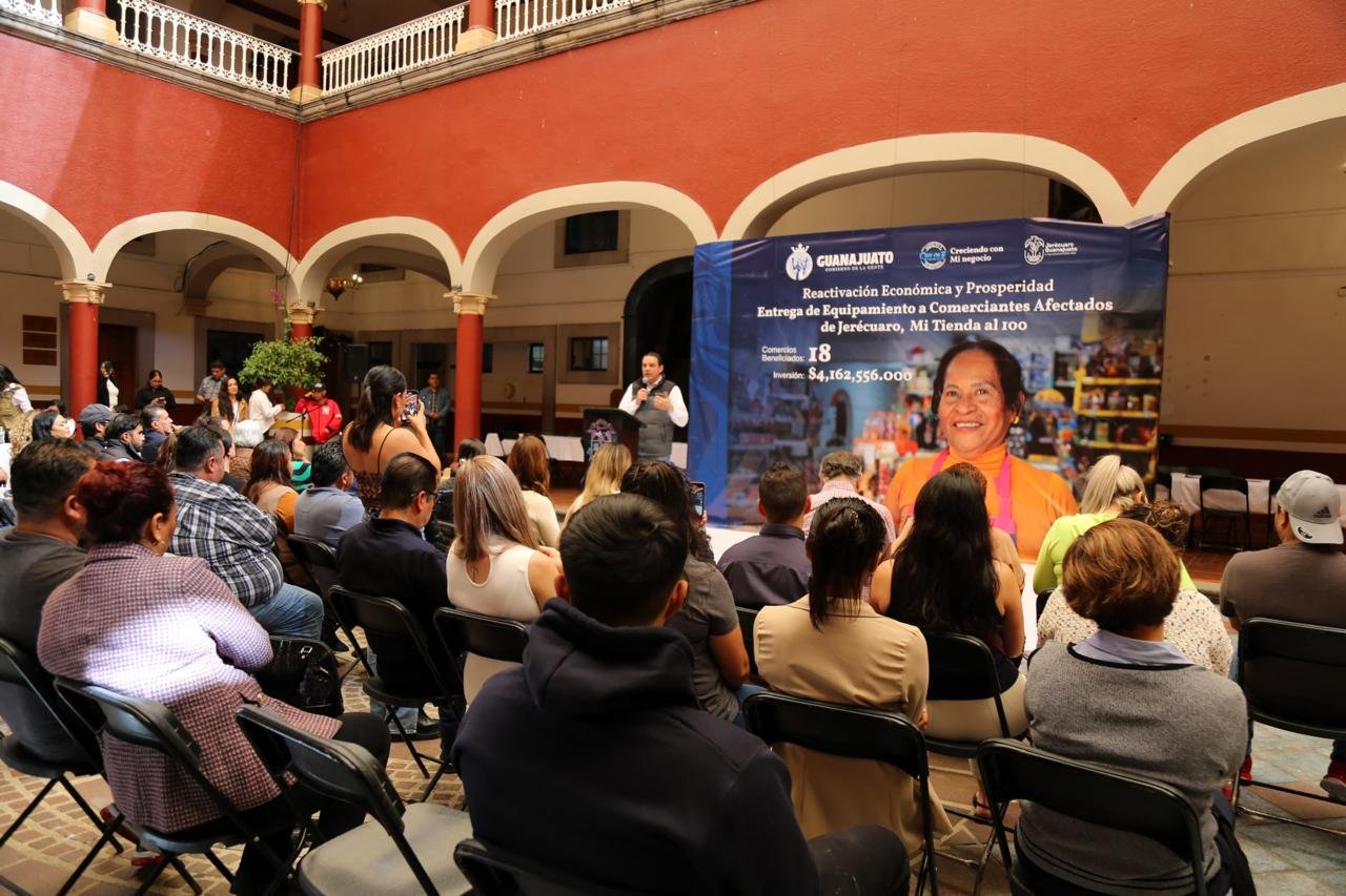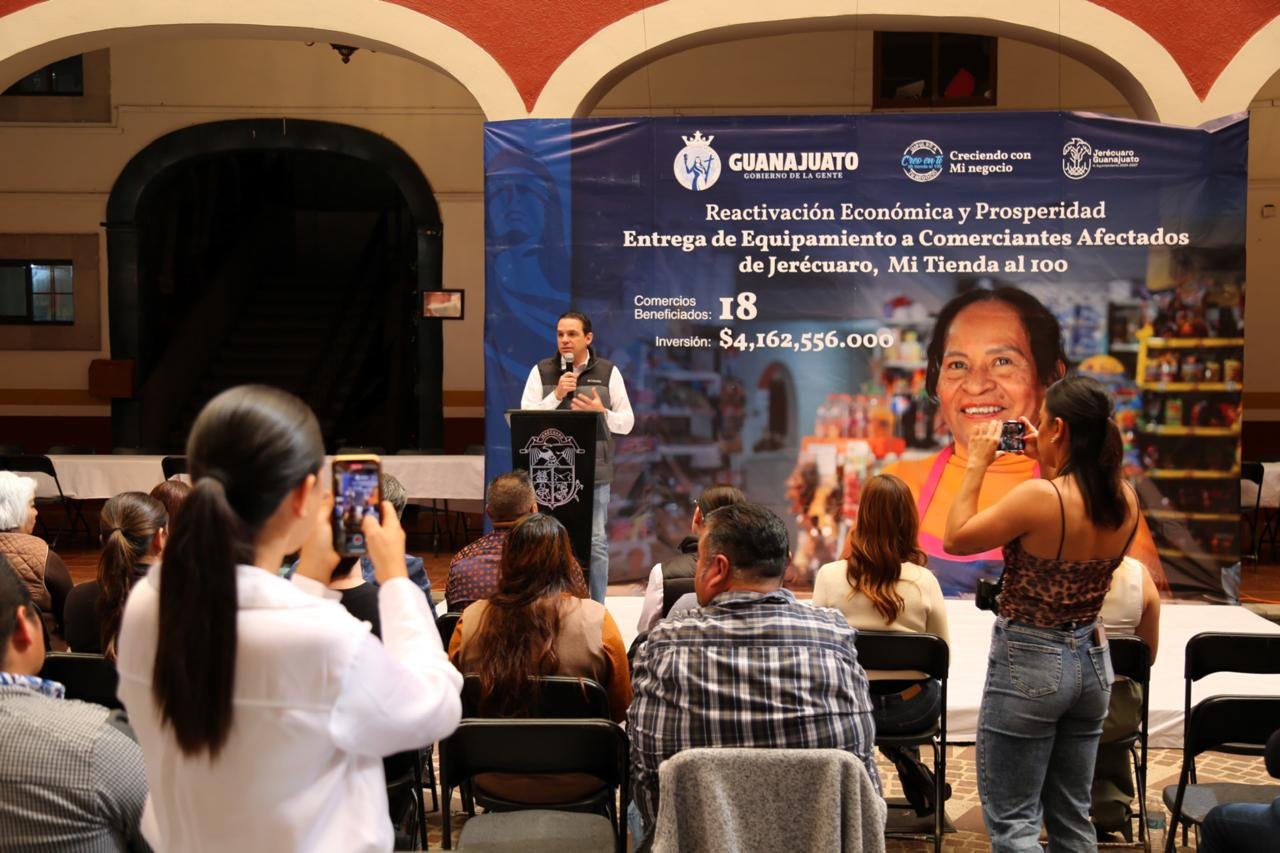 Por instrucciones de la Gobernadora Libia Dennise García Múñoz Ledo, el Secretario de Gobierno Jorge Daniel Jiménez Lona, acompañado de la Secretaria de Economía, Claudia Cristina Villaseñor Aguilar y de la alcaldesa de Jerécuaro, Maria Isabel Ascevedo Mercado, realizaron en dicho municipio la entrega de equipamiento y apoyos para insumos por más de 4 millones de pesos, canalizados por medio del programa “Mi tienda al 100, creo en ti”, para respaldar a 18 comercios que se vieron afectados por el incidente del pasado 24 de octubre.