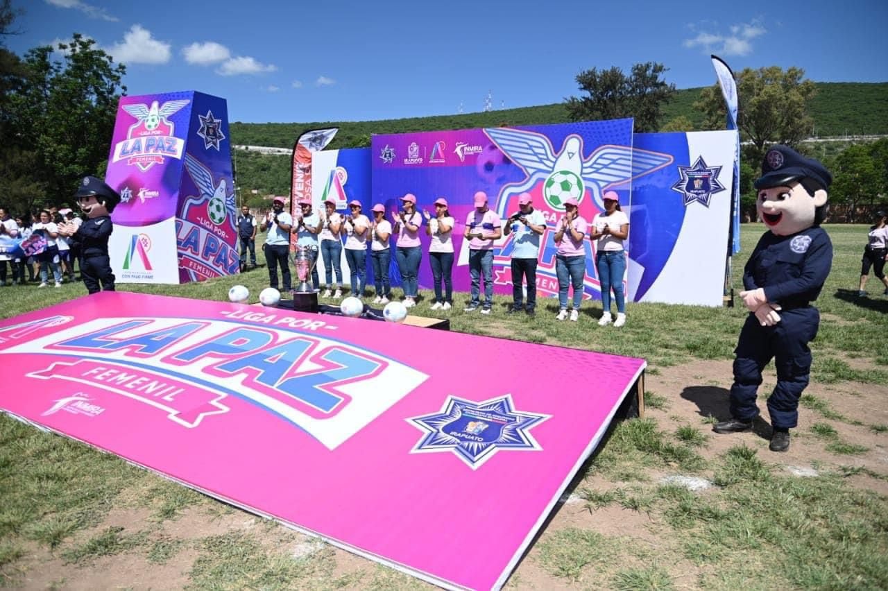 Irapuato, Gto. 11 de septiembre del 2023 .- Para desarrollar el talento deportivo femenil, fomentar la sana competencia, compañerismo, amistad, trabajo en equipo y la convivencia social, el Gobierno Municipal, en un trabajo transversal entre la Secretaría de Seguridad Ciudadana y el Instituto de las Mujeres Irapuatenses (Inmira) dió inicio a la Liga por la Paz Femenil.