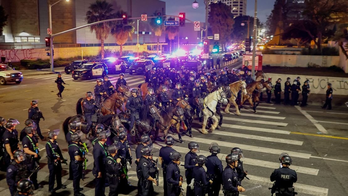 La medida fue tomada luego de que las manifestaciones pacíficas dieran paso a disturbios, bloqueos viales y saqueos a por lo menos 23 comercios en la zona afectada. Según el jefe de Policía, Jim McDonnell, el número de personas detenidas se ha incrementado de forma significativa en los últimos días: el martes se reportaron 197 arrestos, en contraste con los 114 del lunes, 40 del domingo y 27 del sábado.