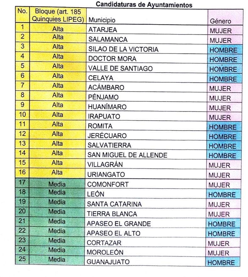 Es así que, para Irapuato y Salamanca, se reserva el lugar para mujeres, dejando en esta última fuera al actual alcalde César Prieto Gallardo, quien incluso declaró su intención de volver a contender.