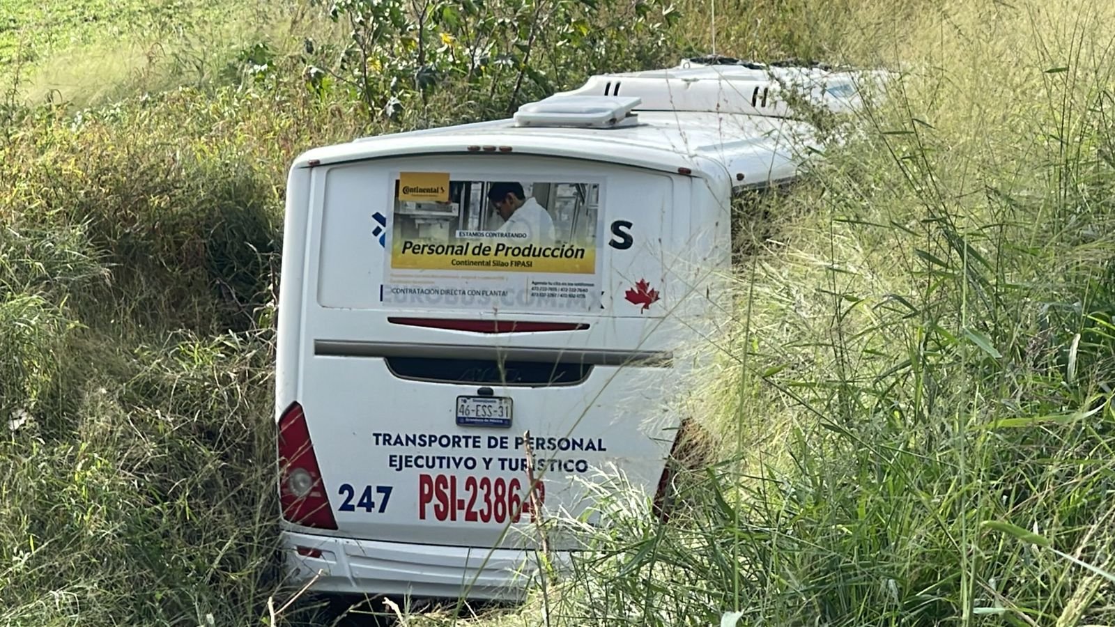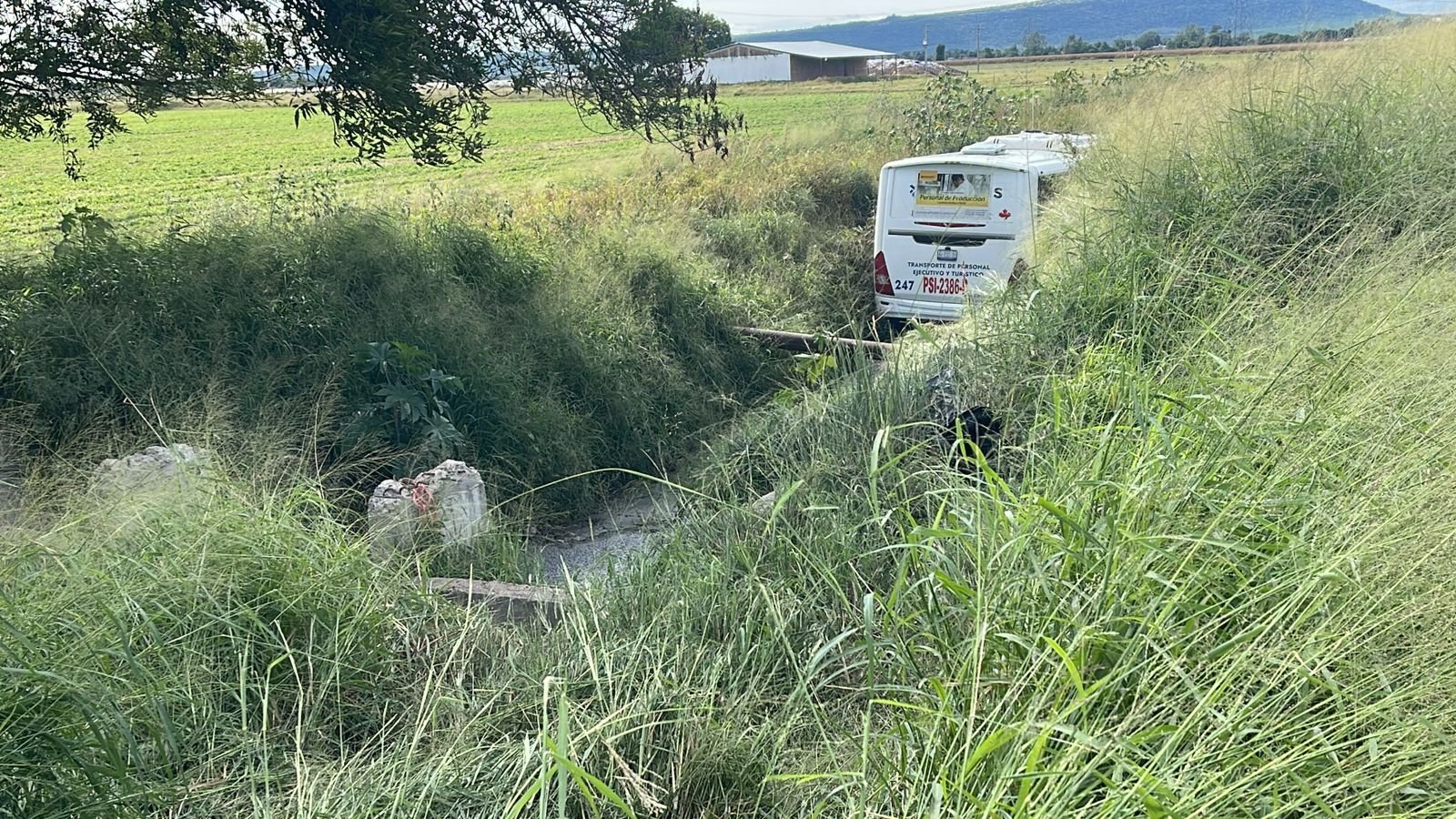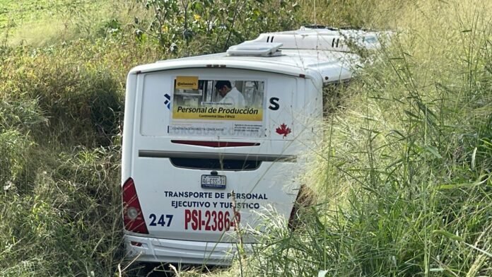 La mañana de este sábado un camión de transporte para personal, fue localizado sobre un canal de riego en la carretera Irapuato – Pueblo Nuevo.