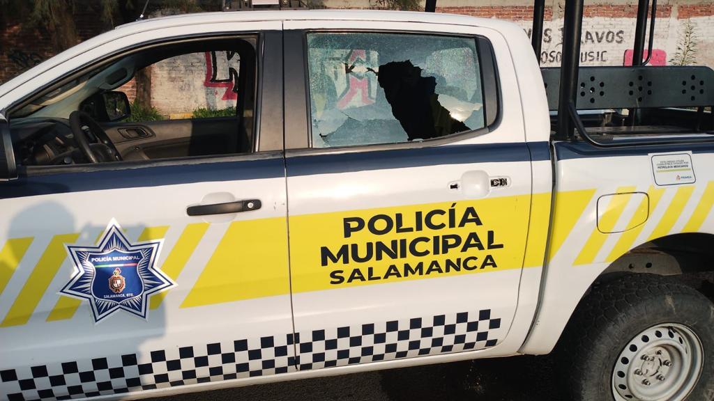 Salamanca.- Daños materiales a una patrulla, recuperación de un auto robado y aseguramiento de una camioneta así como la huida de varios delincuentes fue el saldo de una agresión a balazos unos elementos de la policía municipal.