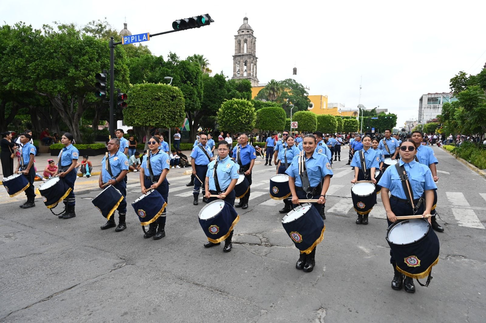 Durante el desfile la Banda Municipal armonizó con diversas melodías el andar de los contingentes.