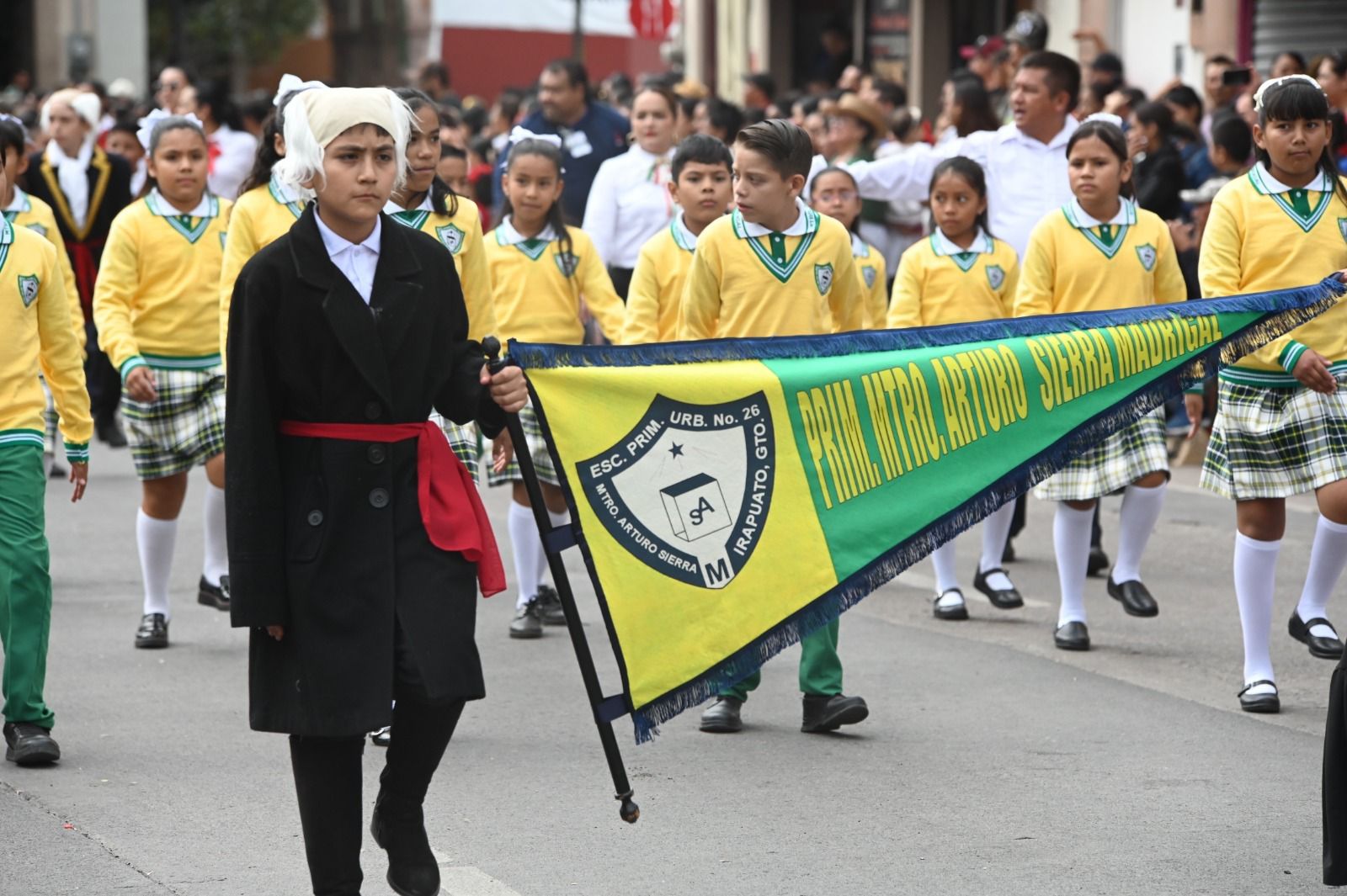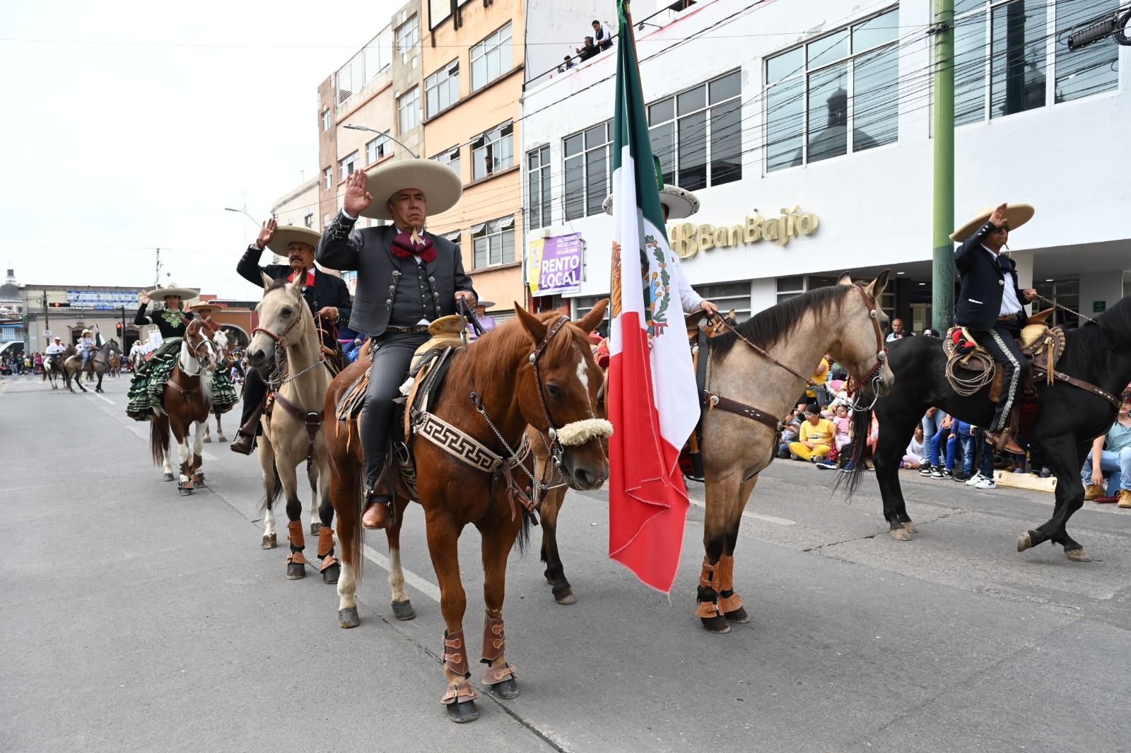 El desfile inició a las 9:30 de la mañana, con la participación de personal militar, Policía Municipal, Bomberos, Protección Civil, Tránsito Municipal, además de instituciones educativas de nivel primaria, el Bachillerato Bivalente Militarizado, Liceo Cervantino, el Pentathlón, la Asociación de Cabalgadores de Irapuato, los 33 Cabalgadores de Cristo Rey, la Asociación de Charros Ignacio León Ornelas y la Cruz Roja Mexicana.