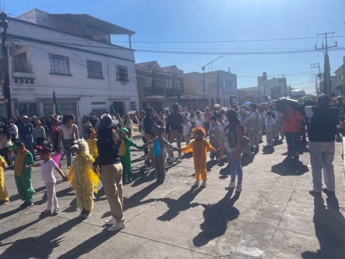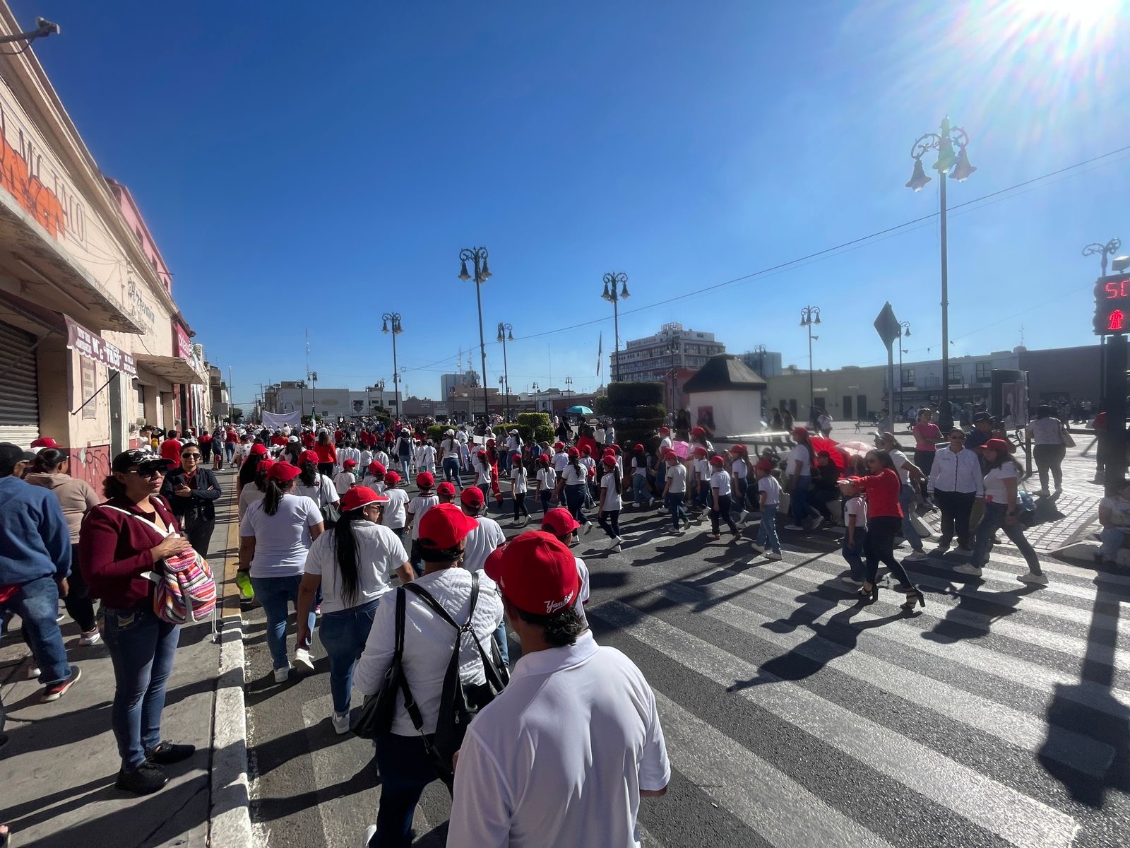 Niños de diferentes planteles educativos así como jóvenes de educación básica superior y secundaria fueron tras los dirigentes petroleros y luego, los trabajadores del departamento de personal marcharon abriendo el paso al resto del contingente de sindicalizados.