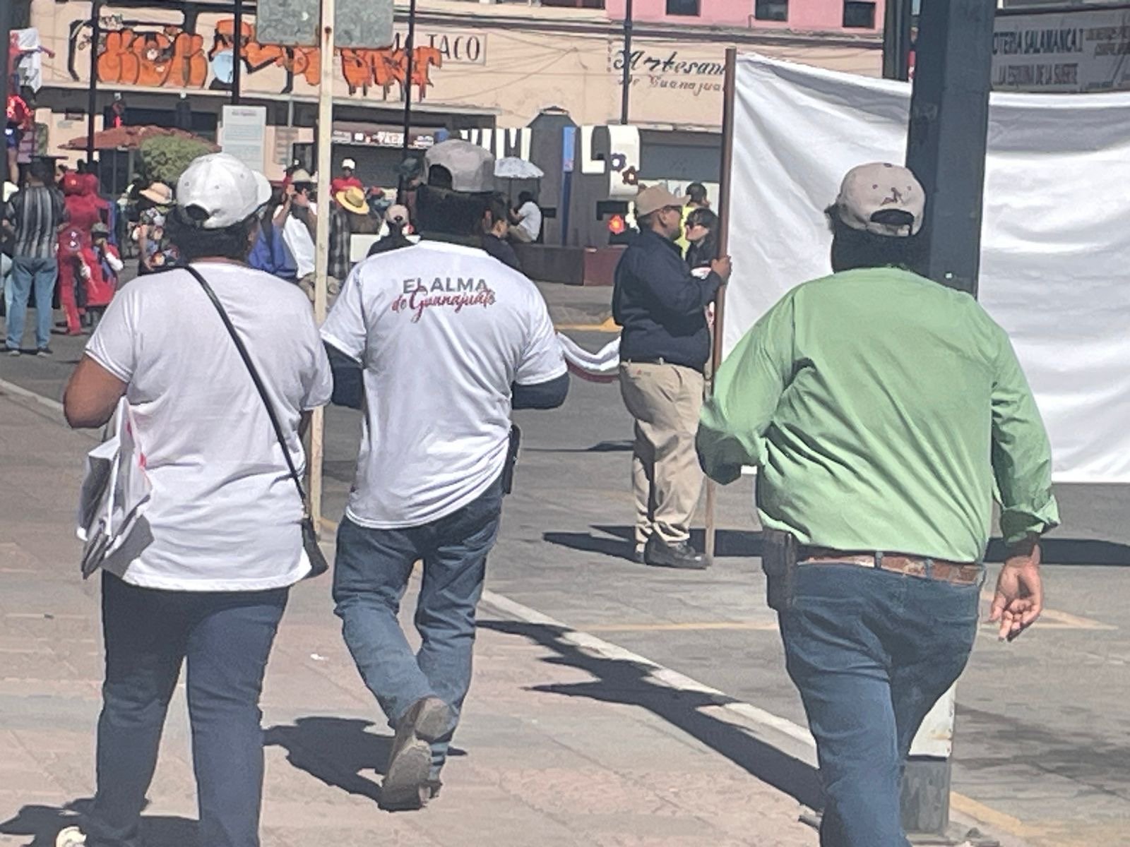 Entre la muchedumbre, miembros de MORENA, realizaron la entrega de publicidad y vestían color guinda con señal de respaldo a su candidata a la gobernatura de Guanajuato, Alma Alcaraz y de igual forma, simpatizantes de Libia Denisse García Muñoz distribuyeron publicidad panista en la cual criticaron a su adversaria de Morena porque dicen, no es guanajuatense.
