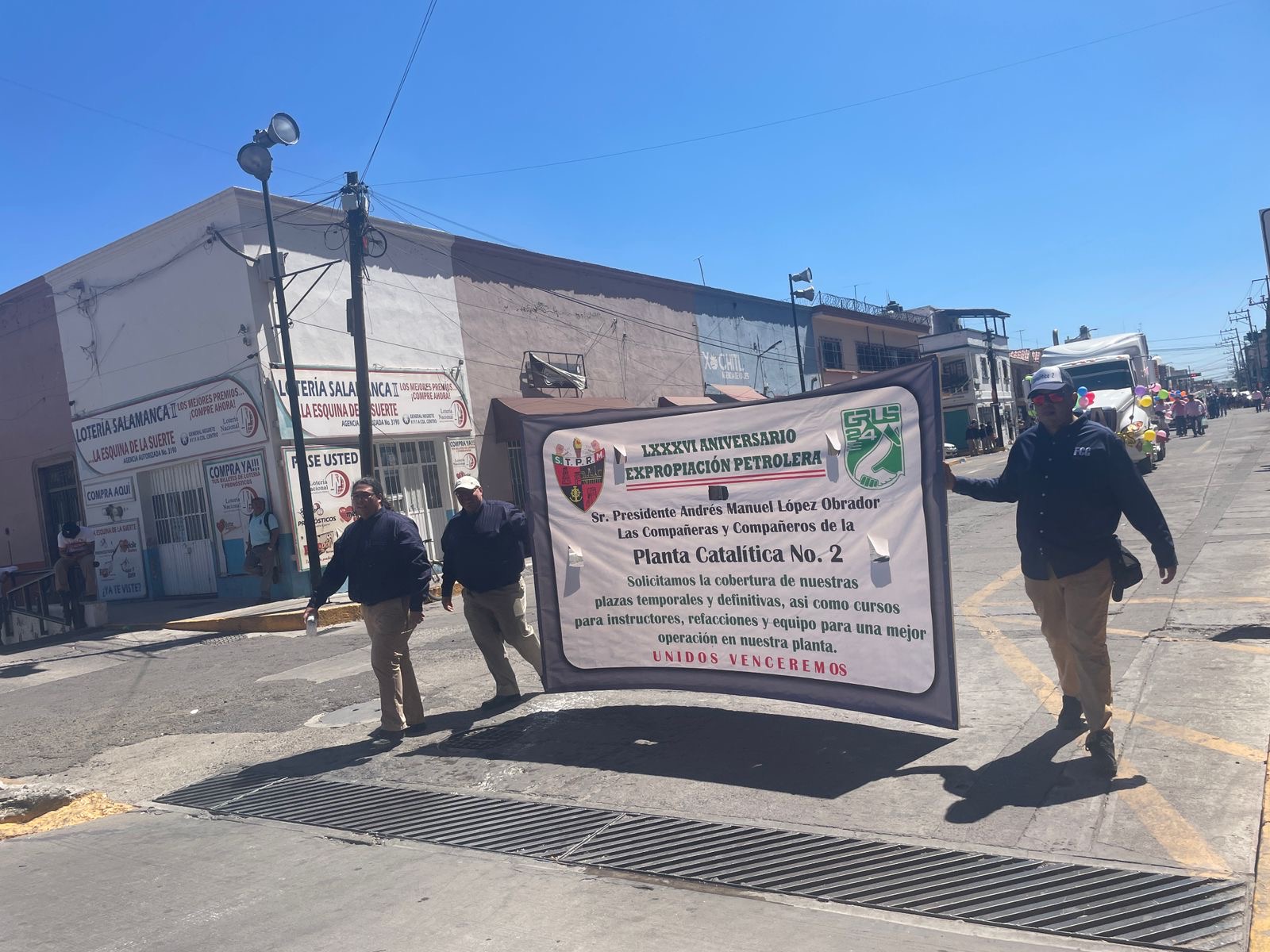 Salamanca.- Miles de personas participaron y presenciaron en el desfile de la expropiación petrolera y mientras trabajadores se dicen apoyar a MORENA, integrantes de ese movimiento y del Partido Acción Nacional, aprovecharon para promover a sus candidatas a la gobernatura.