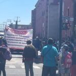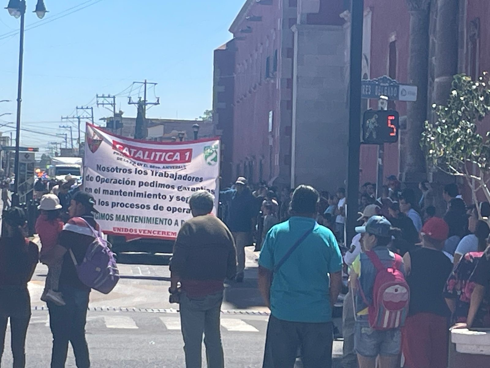 Por órdenes de sus líderes sindicales, los trabajadores mostraron pancartas para expresar su apoyo al Presidente de la República y a la vez exigieron respeto a su contrato colectivo de trabajo.
