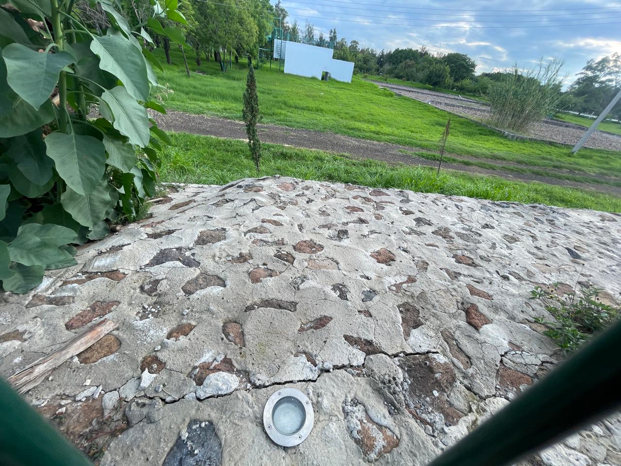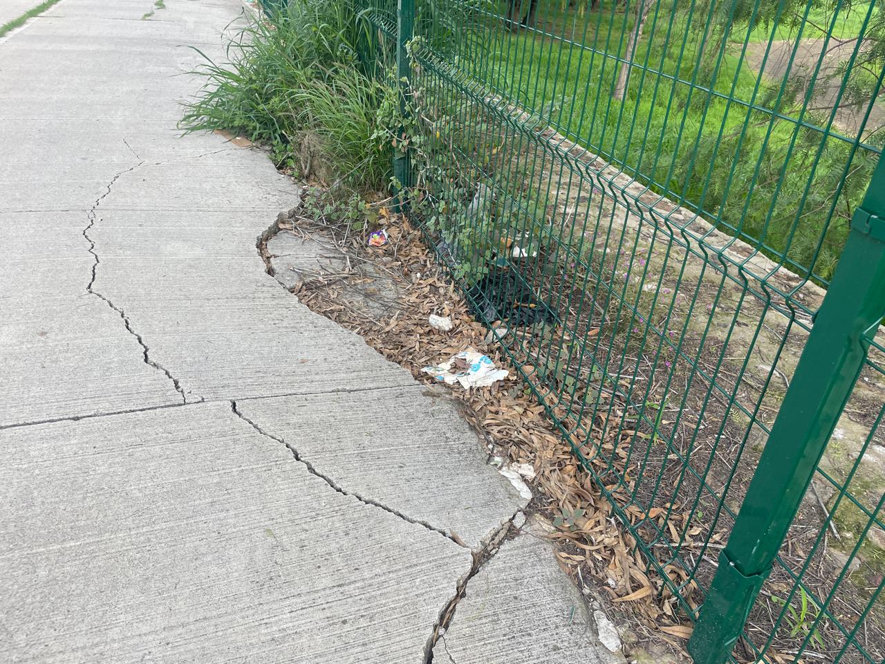 Salamanca.- Probablemente por acomodo del suelo, el concreto colocado para el enrejado del Ecoparque sobre la avenida del Parque presenta grietas y separaciones.