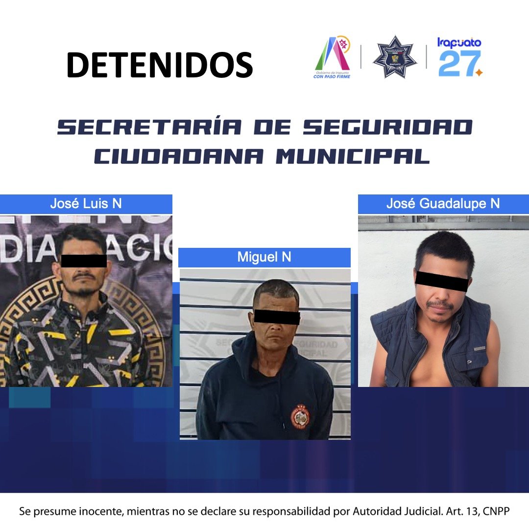Como resultado de los operativos de prevención y seguridad implementados en distintas zonas del municipio, elementos de la Policía Municipal de Irapuato detuvieron a tres hombres en posesión de presunta droga tipo cristal. Dos de los detenidos cuentan con antecedentes penales y varios ingresos a prisión por diversos delitos.