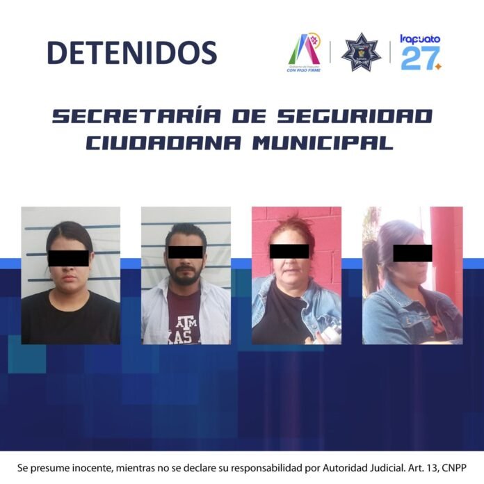 Cuatro personas —tres mujeres y un hombre— fueron detenidas por elementos de la Policía Municipal de Irapuato por su presunta participación en el robo de mercancía en un supermercado, en dos hechos distintos, informó la Secretaría de Seguridad Ciudadana Municipal.