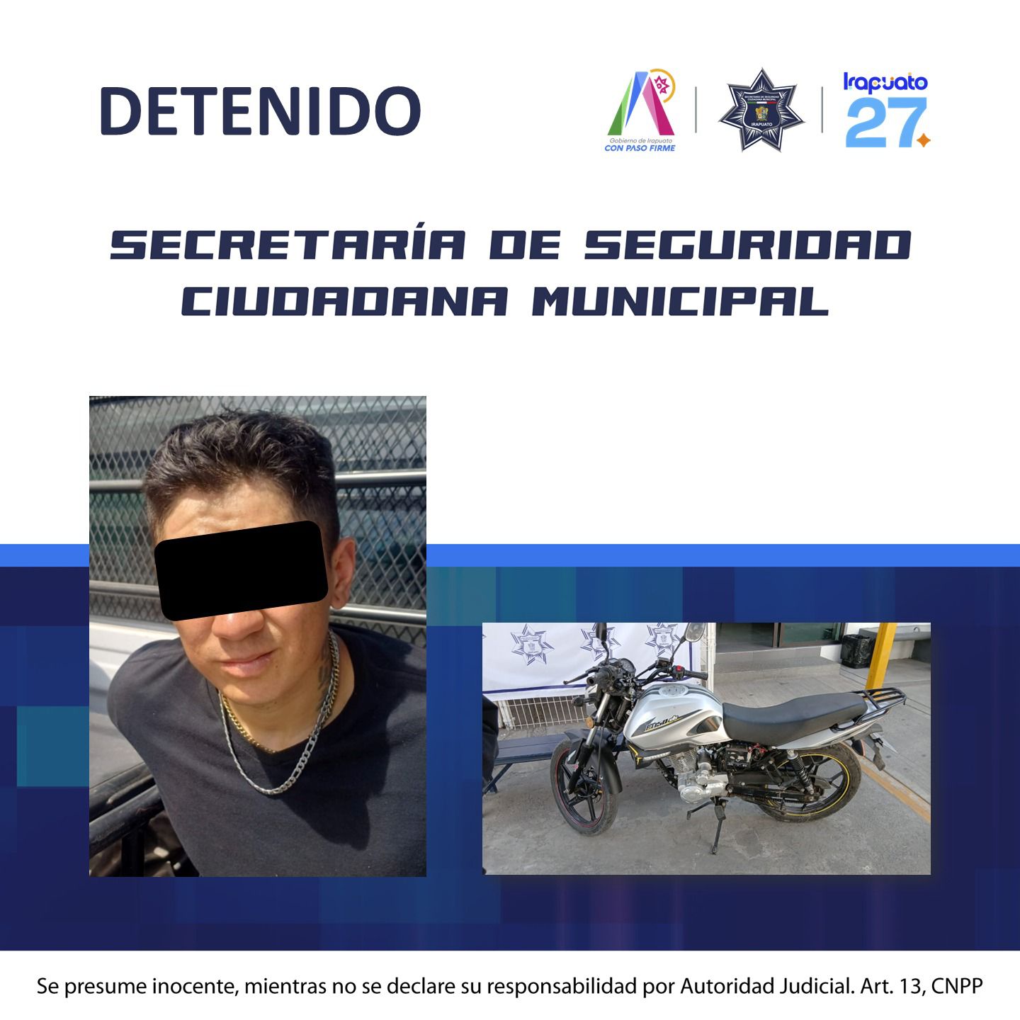 El Gobierno Municipal, a través de la Secretaría de Seguridad Ciudadana, exhortó a la población a presentar denuncia formal ante la Fiscalía General del Estado de Guanajuato en caso de identificar al detenido como probable responsable de otros hechos delictivos.