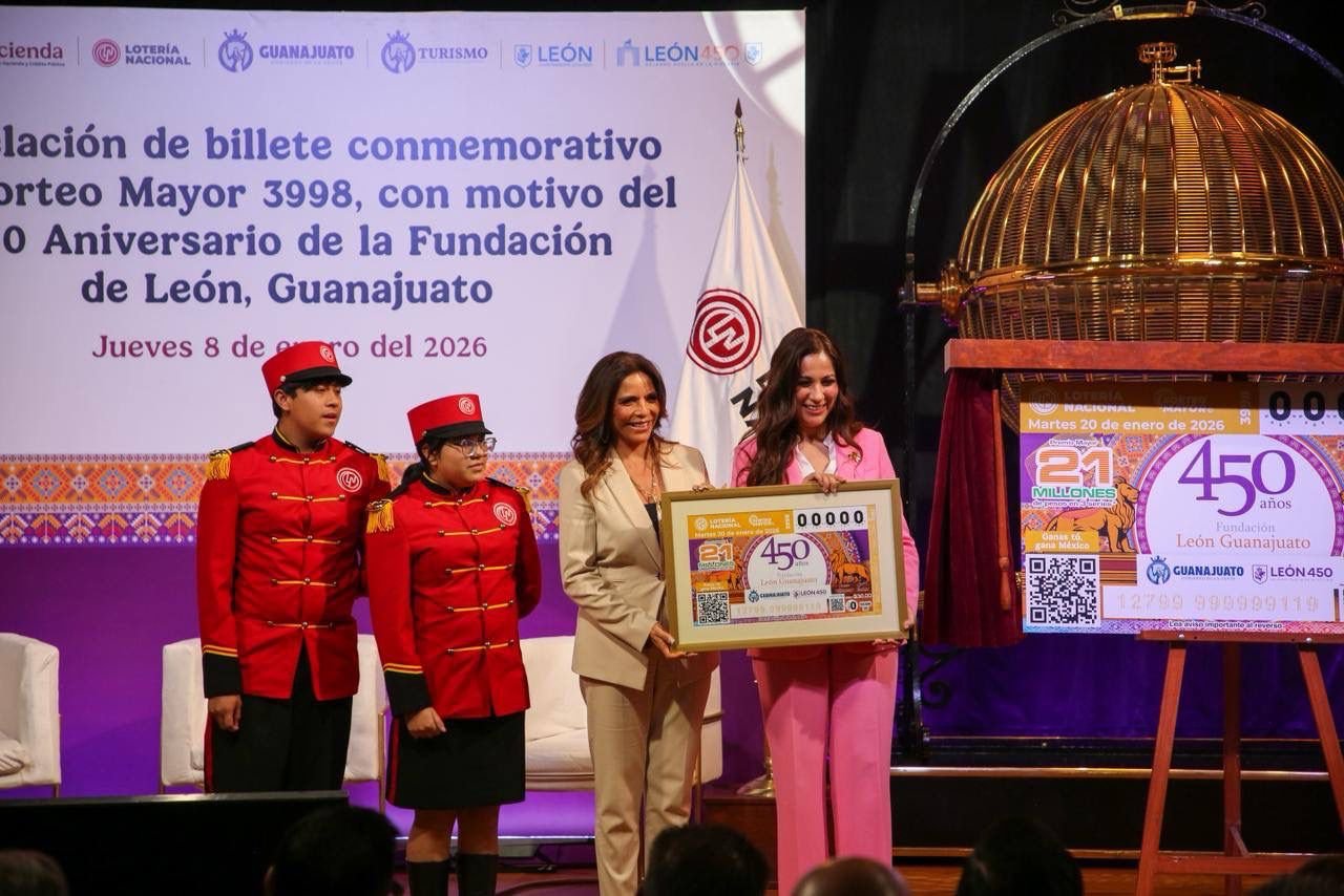 En el marco de la conmemoración por los 450 años de la fundación de León, Guanajuato, la Lotería Nacional presentó el billete del Sorteo Mayor No. 3998, una edición especial que reconoce la historia, identidad y el esfuerzo colectivo de generaciones que han dado forma a esta ciudad.