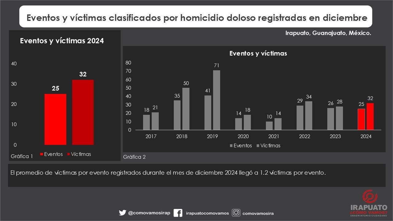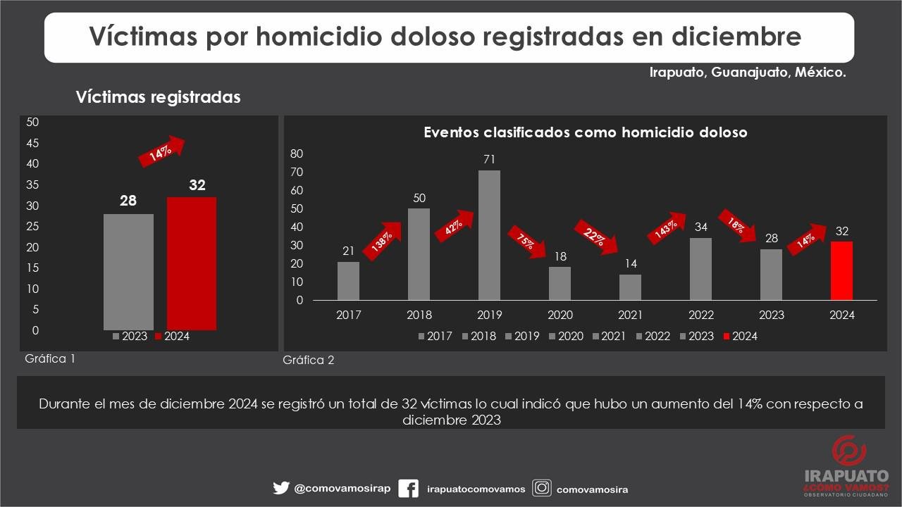 Durante diciembre 2024 aumentaron víctimas por homicidio doloso vinculados al crimen organizado: Irapuato ¿cómo vamos?