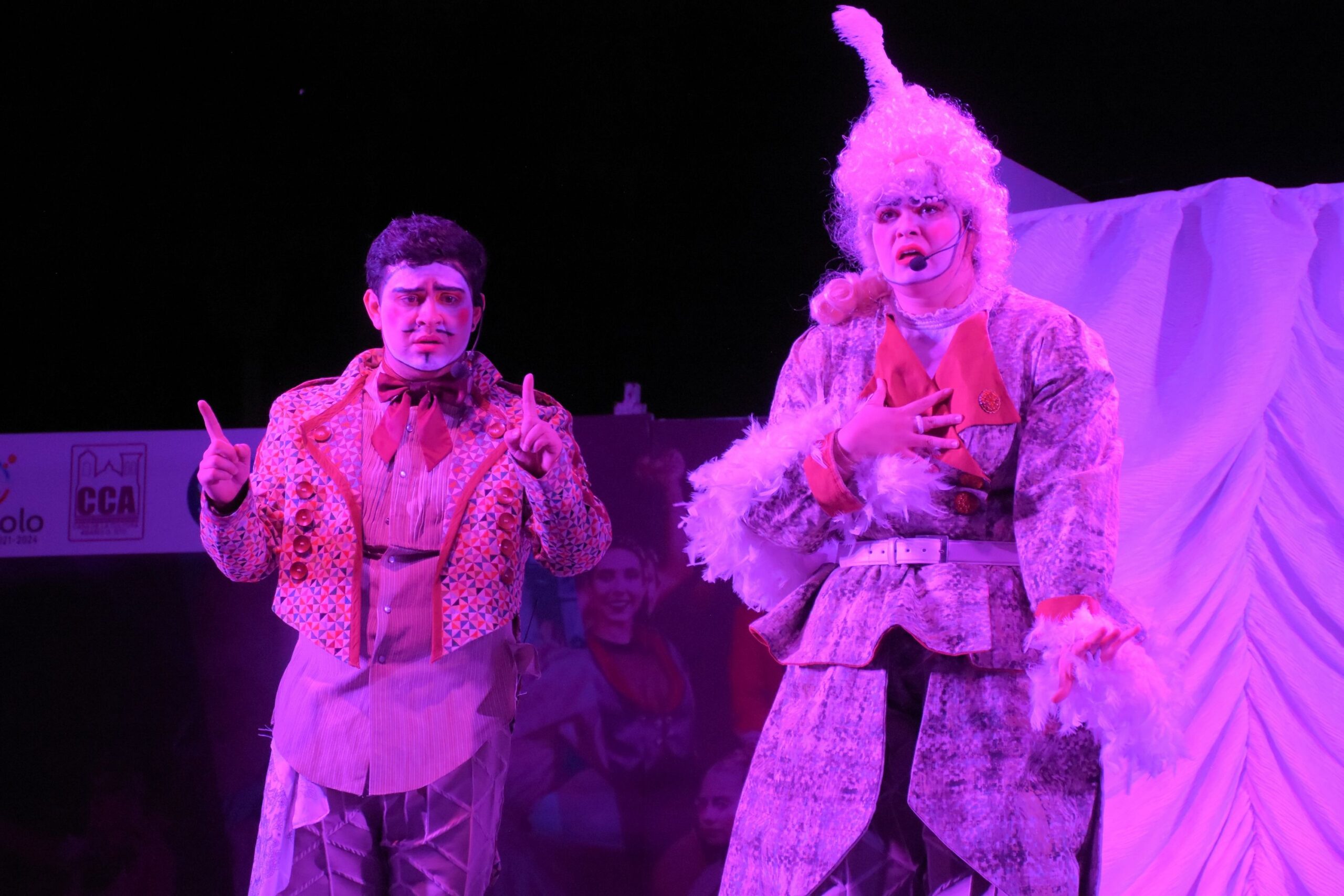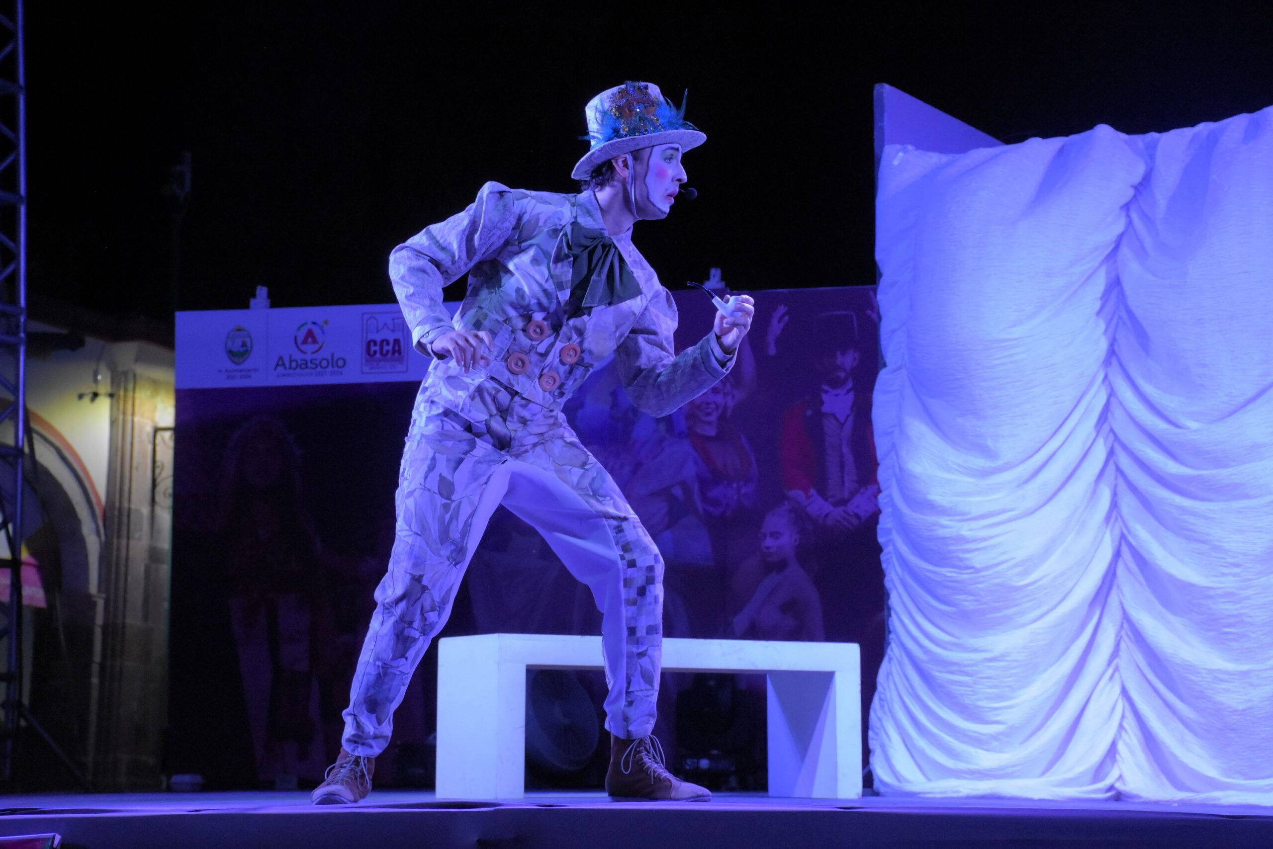 Abasolo, Gto. 15 de mayo de 2023.- El penúltimo día de la 47ª Semana Cultural en Abasolo, se presentó una magnífica puesta en escena de la obra clásica de Molière, El Papanatas, a cargo del grupo Líquido Colectivo de León, Gto. Espectáculo con el cual, el público disfrutó de los enredos y torpezas del entrañable Leilo en su afán de conquistar a su adorada Celia.